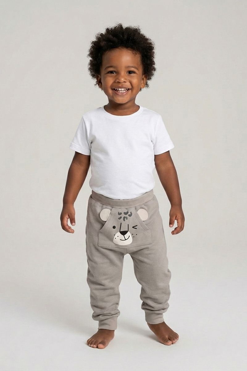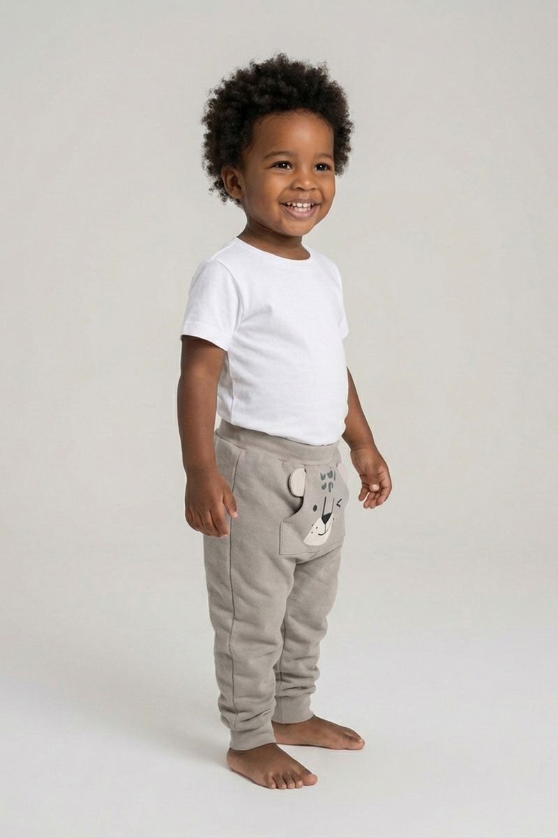 A Calça de Moletom Infantil Bege com Bolso Canguru Ursinho Fofo Caedu oferece conforto e estilo. Em 100% algodão, garante maciez. Com bolso canguru e ursinho fofo, é a roupa ideal para a moda infantil, unindo diversão e qualidade.