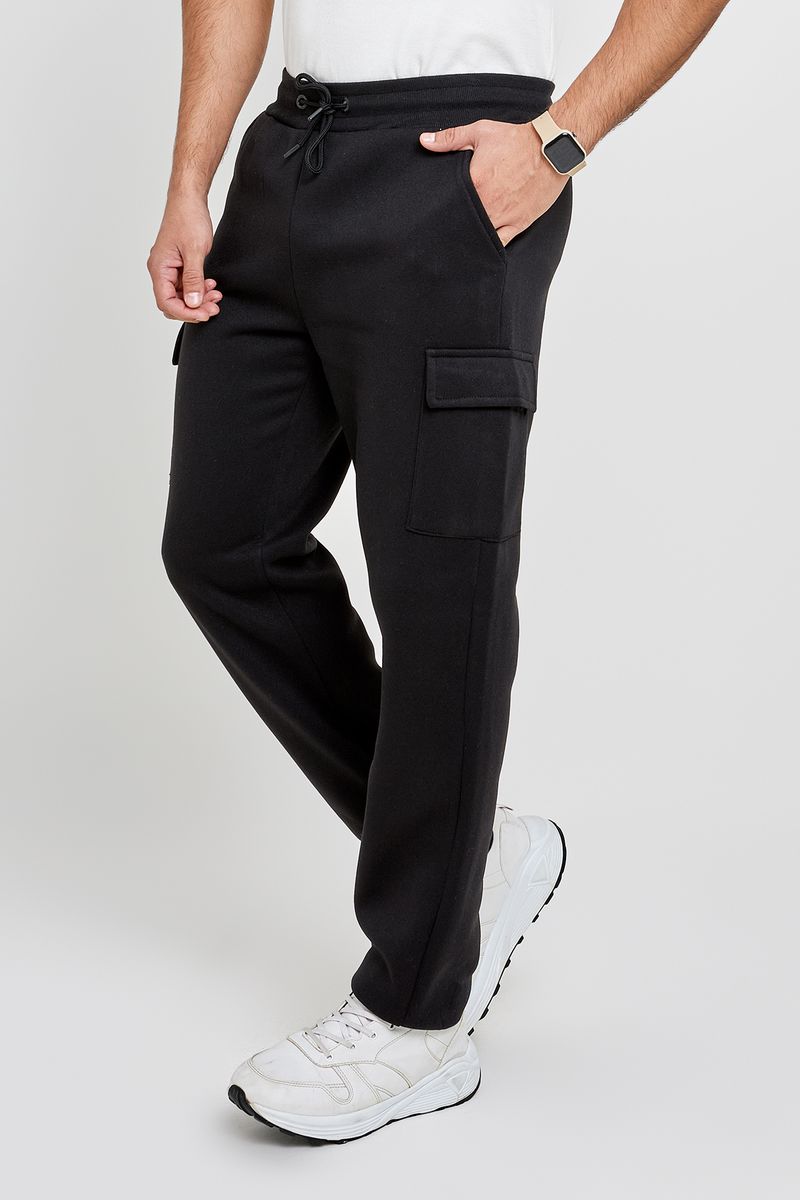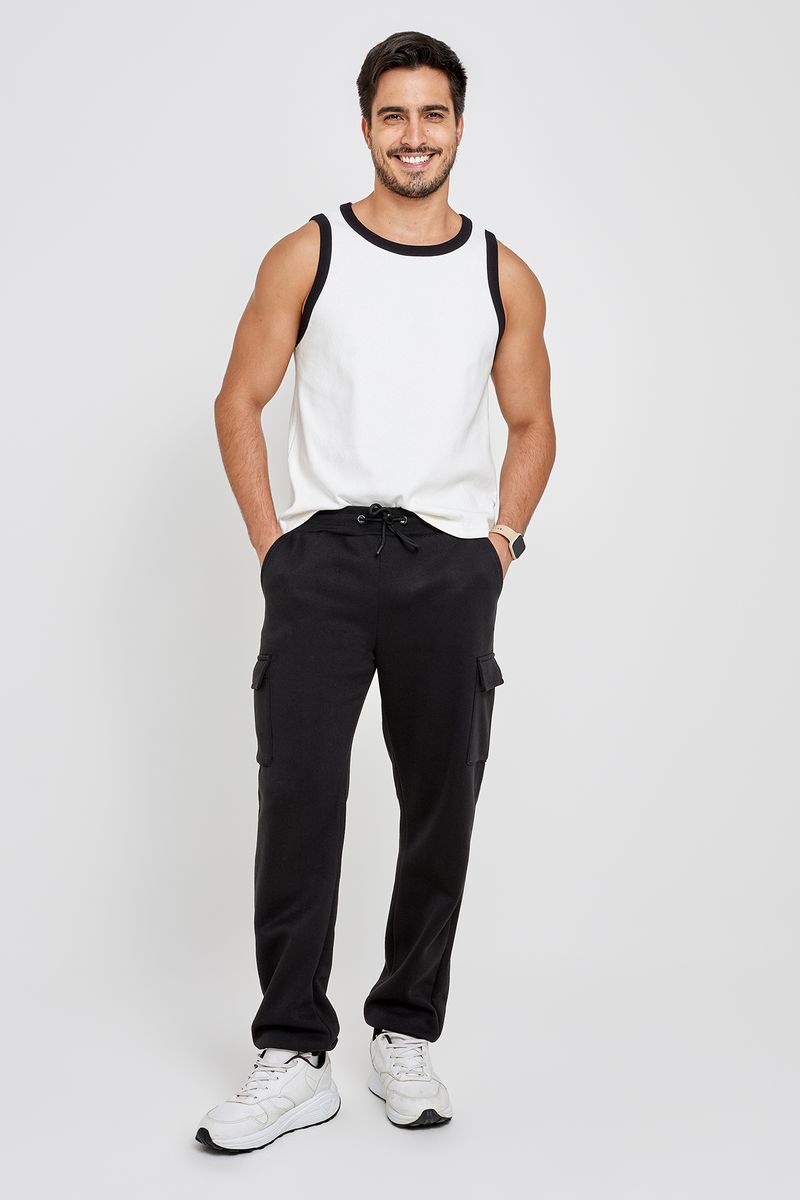 Calça Moletom Masculina Cargo Preta