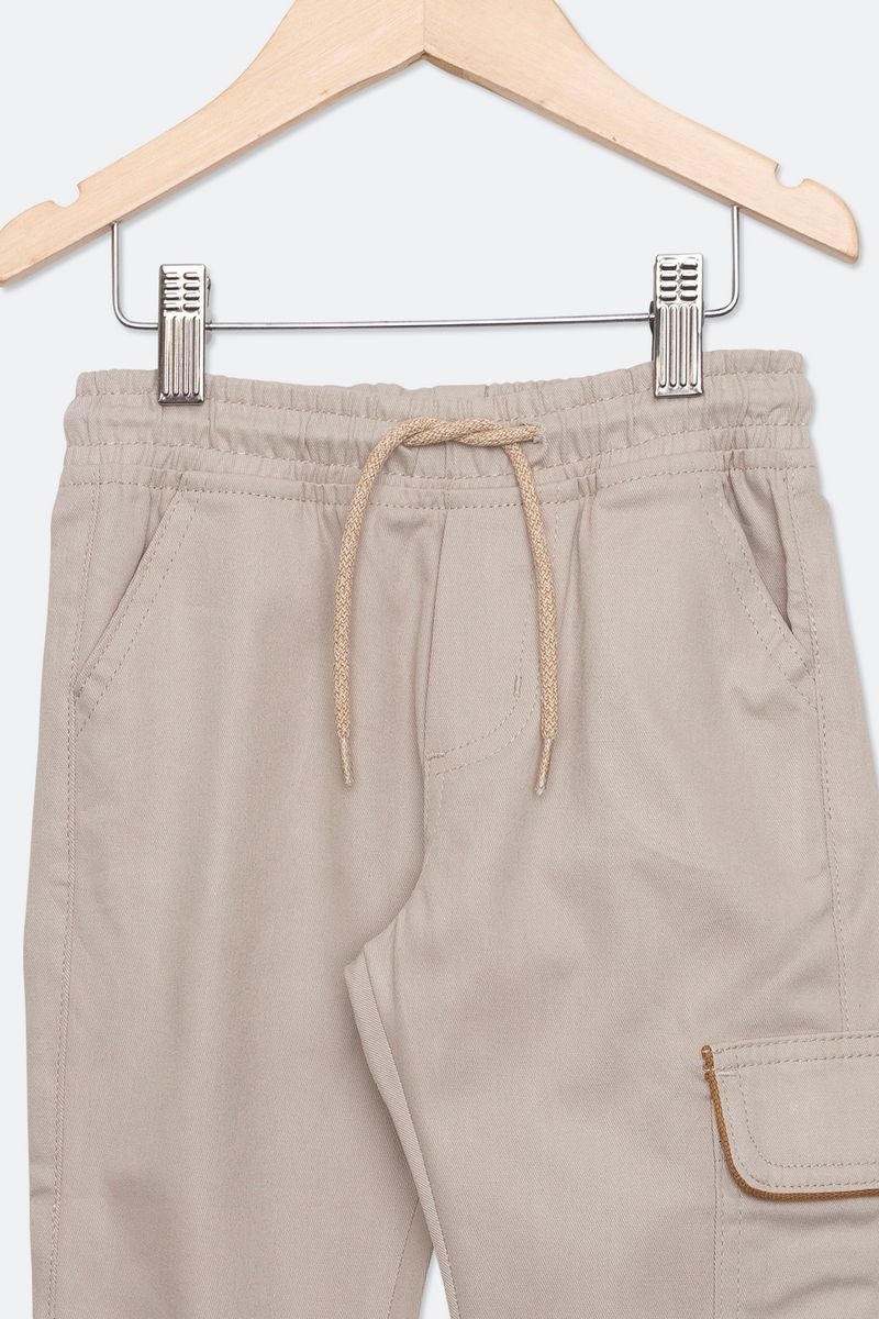 Calça Jogger Infantil Cargo em Sarja Bege Tam 1 a 3