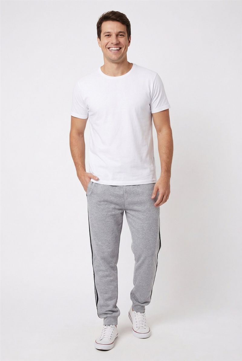 Eleve seu estilo com a Calça Jogger Masculina Caedu de moletom. Confeccionada em 100% algodão, esta peça oferece conforto superior e um visual streetwear autêntico. Com faixa lateral e bolsos funcionais, é a escolha ideal para quem busca roupas modernas e versáteis.
