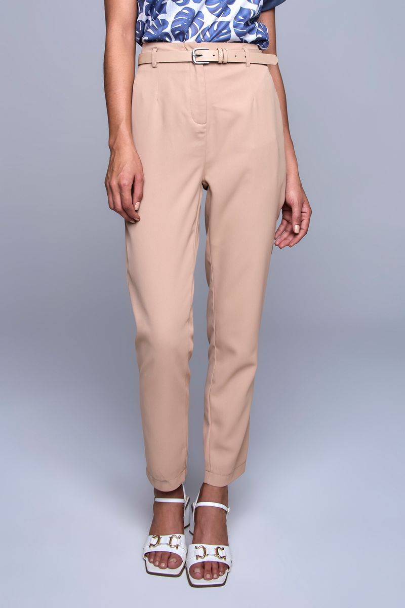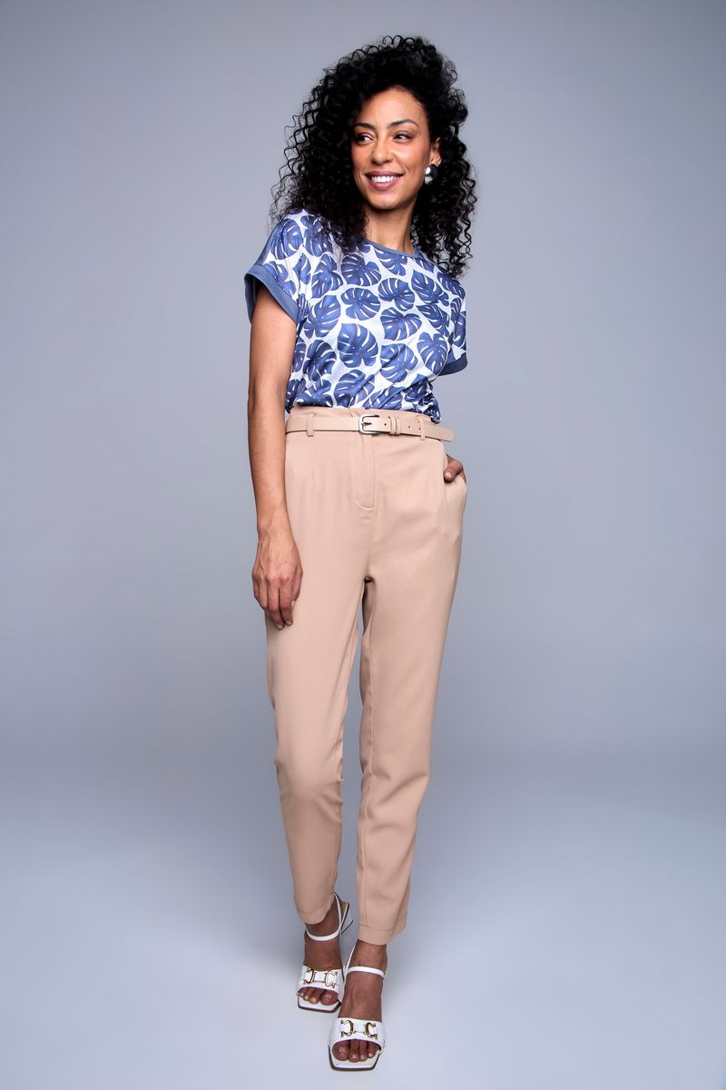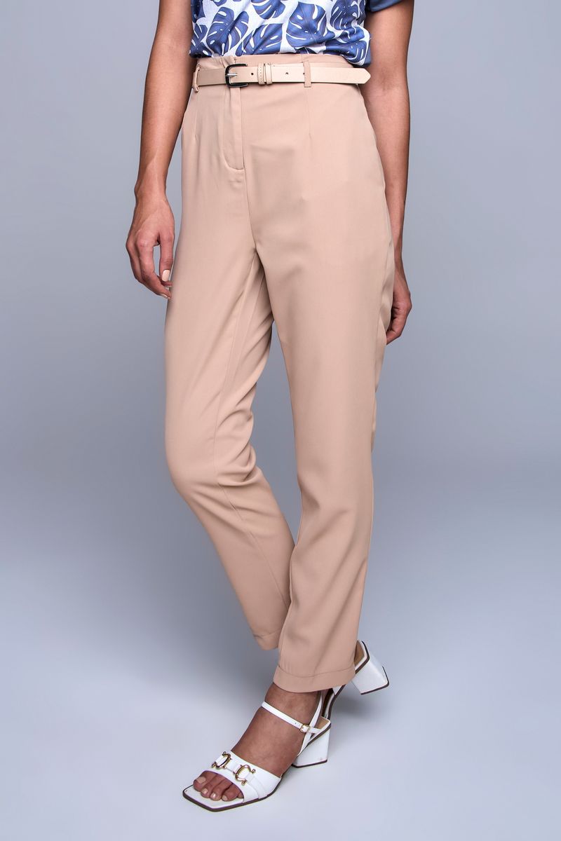 Combine sua Calça Feminina Bege Caedu com blusas de seda para um toque sofisticado, ou camisetas básicas para um visual mais despojado. Nos pés, aposte em sandálias brancas para um look leve ou scarpins para elegância. Adicione um cinto para definir a cintura e complete com acessórios discretos.