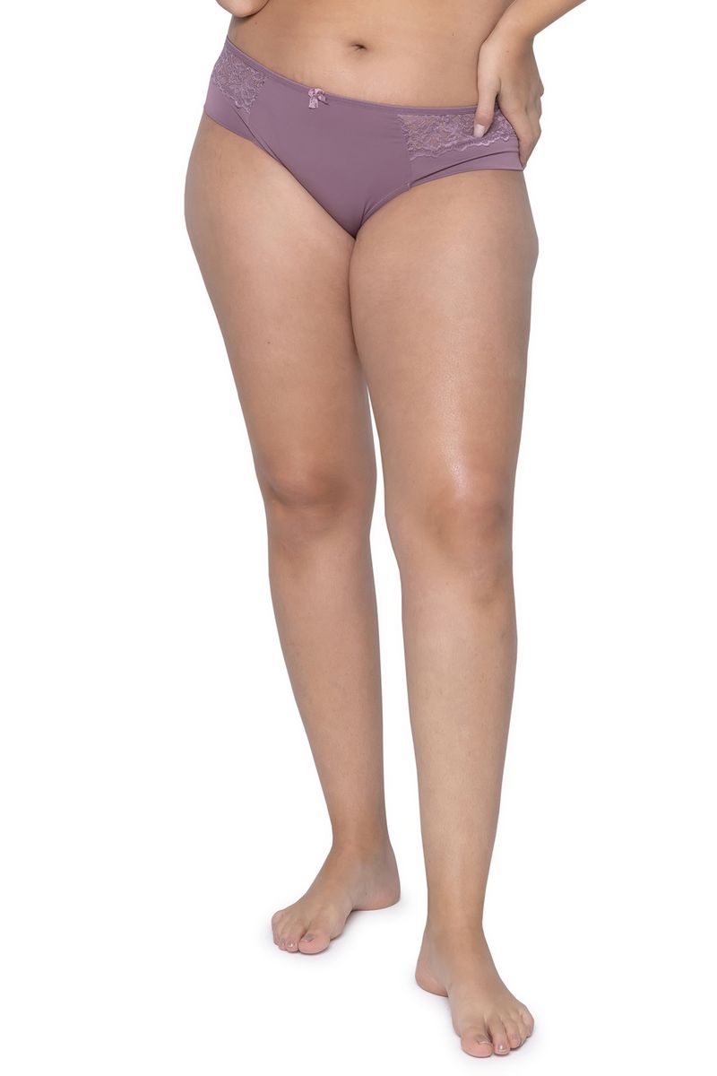 Calcinha modelo plus size, confeccionada em tecido renda. Possui laterais largas e transparência.