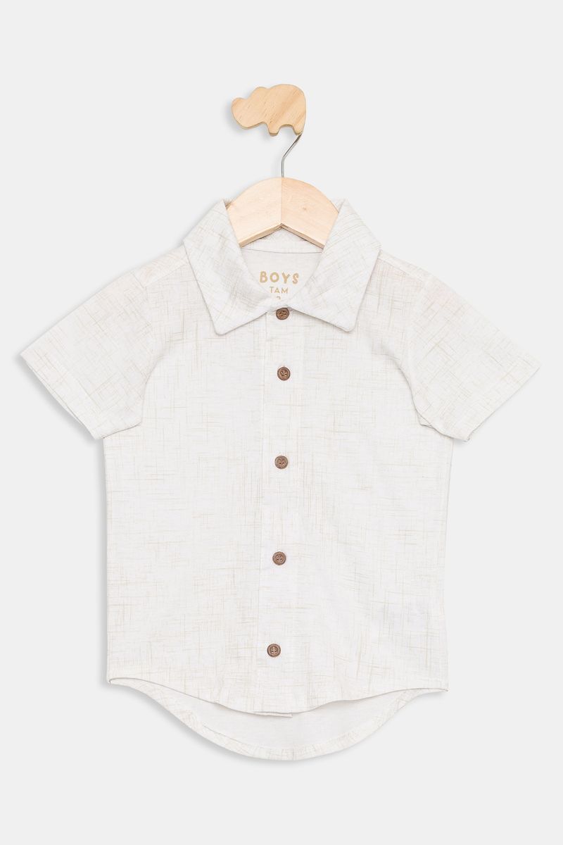 Camisa infantil off white, confortável e versátil para os pequenos.