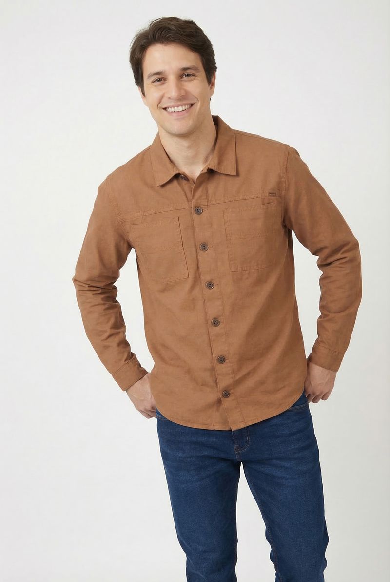 VestuárioMasculinoCamisasCamisa masc cas srj m/l marrom claro marrom claro