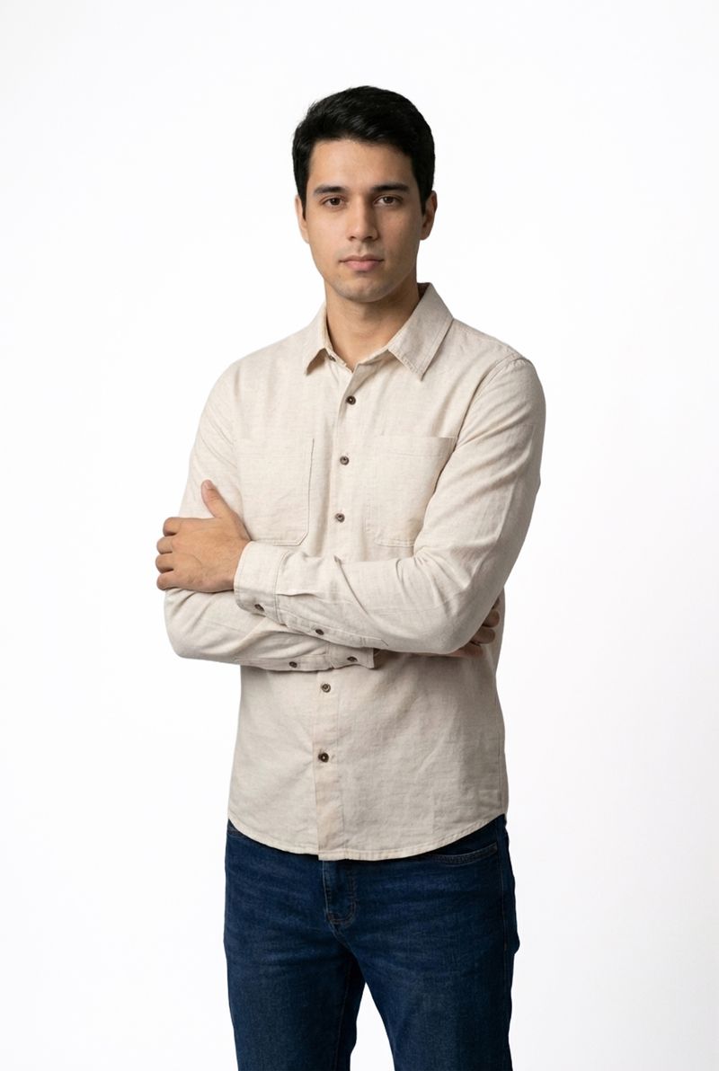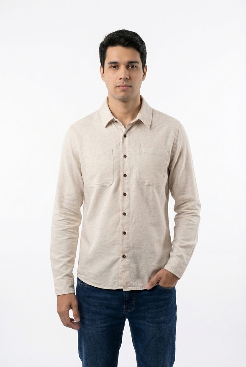 Eleve seu estilo com a Camisa Masculina de Linho Premium Caedu. Confeccionada em linho de alta qualidade na cor off-white, oferece caimento casual e descomplicado. Perfeita para quem busca conforto e elegância, esta roupa versátil é essencial no guarda-roupa masculino.