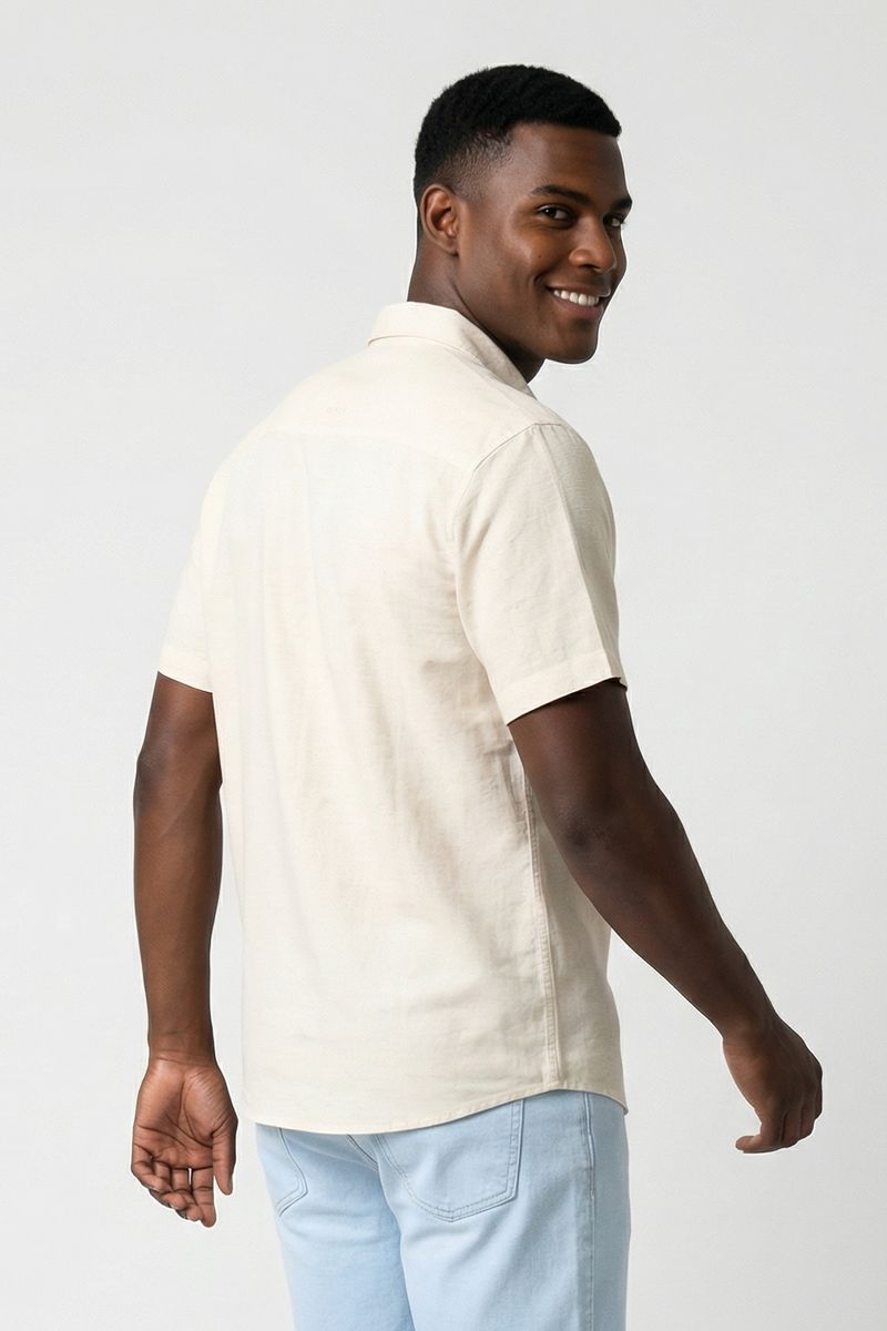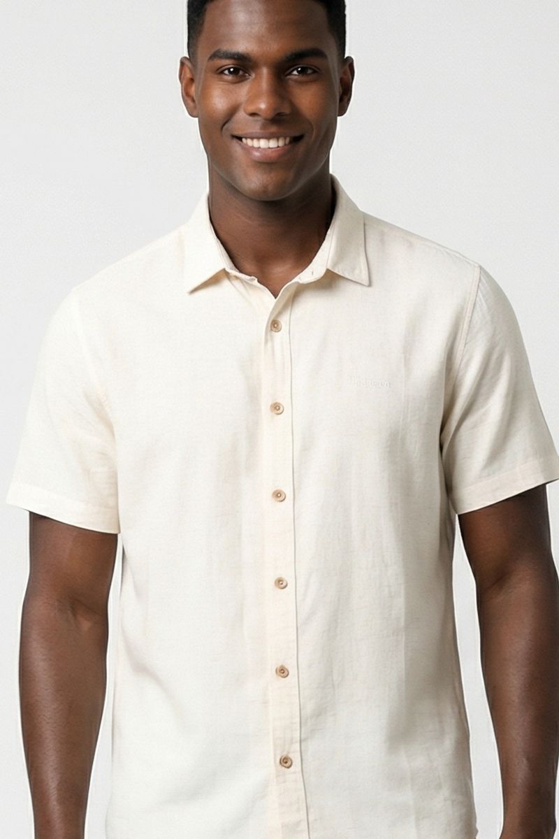 Eleve seu estilo com a Camisa Masculina Caedu Manga Curta Casual Bege Areia. Confeccionada em linho e algodão, oferece leveza e conforto. Seu design casual com botões e cor neutra garante versatilidade para um visual moderno. Essencial na moda masculina.