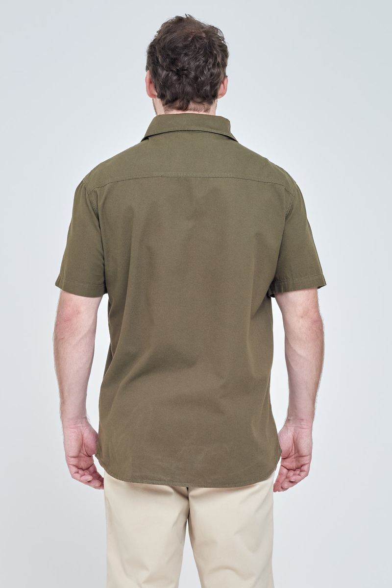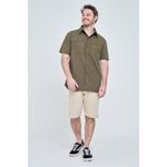 Camisa Masculina em Sarja com Bolsos Verde Escuro