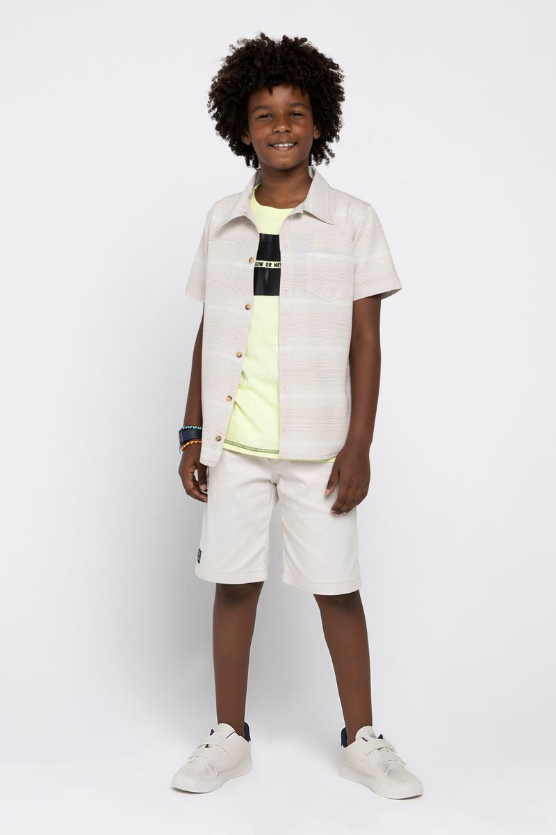 Camiseta Juvenil Menino Tam 10 a 16 Manga Comprida Eco Listrada Bege