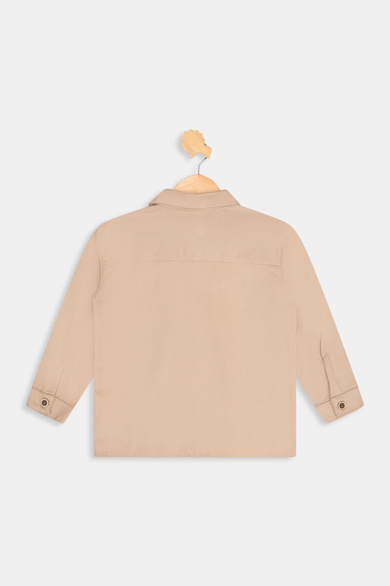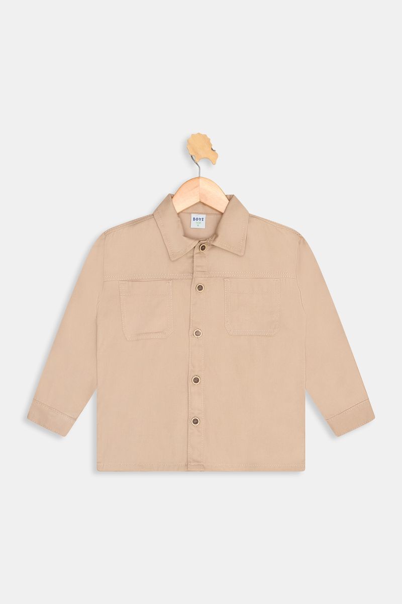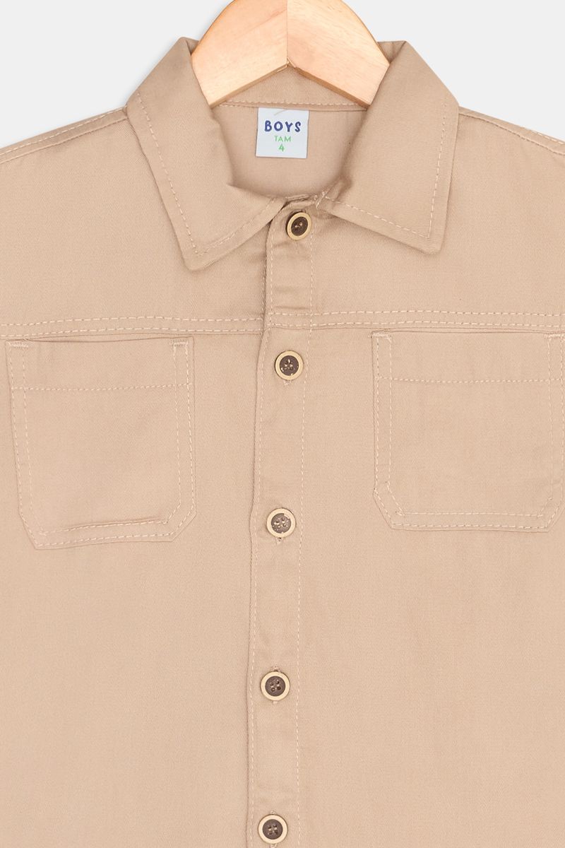 Detalhes: Gola clássica, abotoamento frontal, bolsos chapados no peito, mangas longas com punhos simples