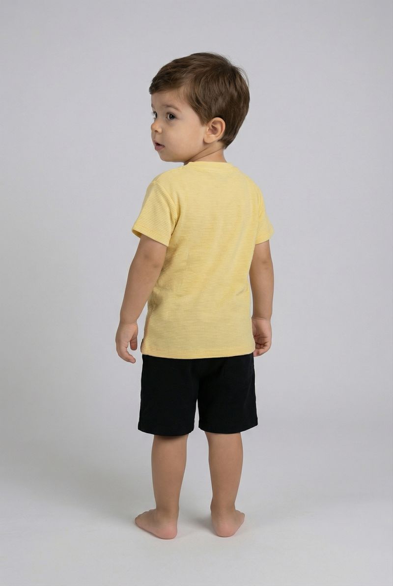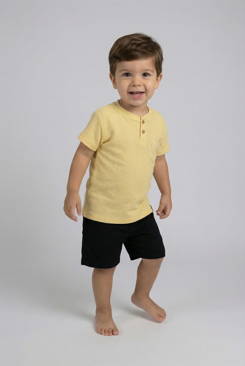 Combine esta blusa amarela clara com shorts jeans para um look despojado, ou com shorts de sarja para um visual mais arrumado. Para os pés, tênis casuais ou sandálias são ótimas opções. Adicione um boné ou óculos de sol para um toque extra de estilo e proteção, criando um conjunto charmoso e confortável para qualquer aventura.
