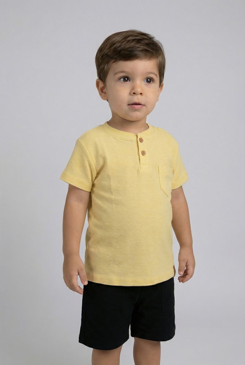 A Blusa Infantil Caedu em amarelo claro une conforto e estilo. Feita em moletinho 100% algodão, com gola padre, botões e bolso, é ideal para o dia a dia. Uma peça versátil da moda Caedu.