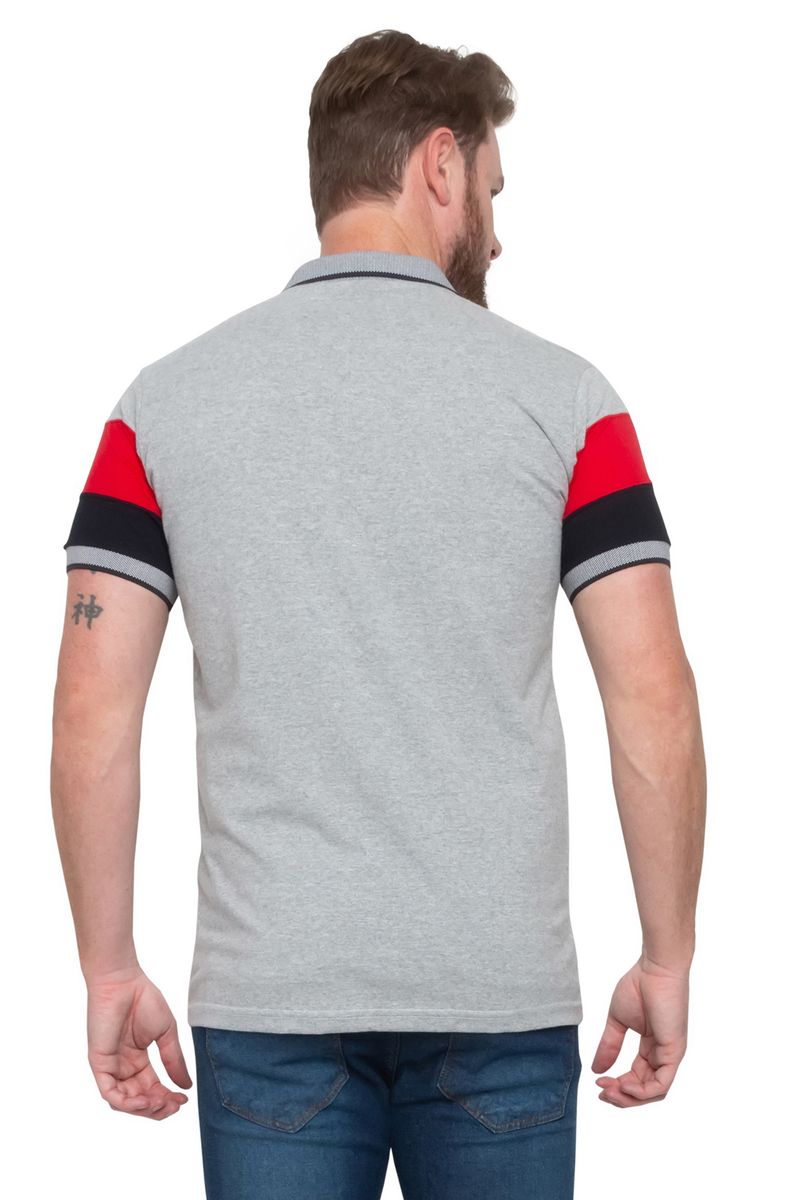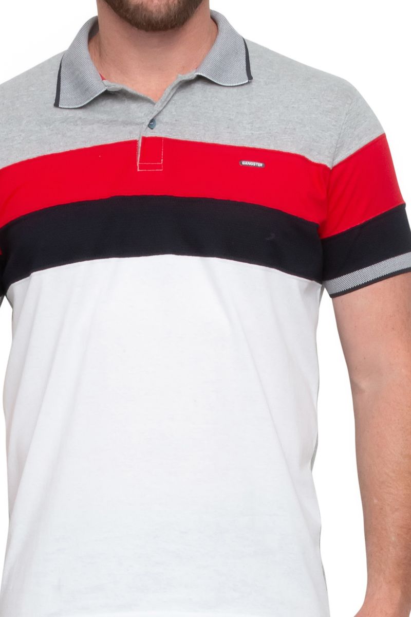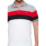VestuárioOfertasMasculinoNovidadesPolosMasculinoCamisa Polo Masculina com Recortes Mescla Vermelho Azul e Branco