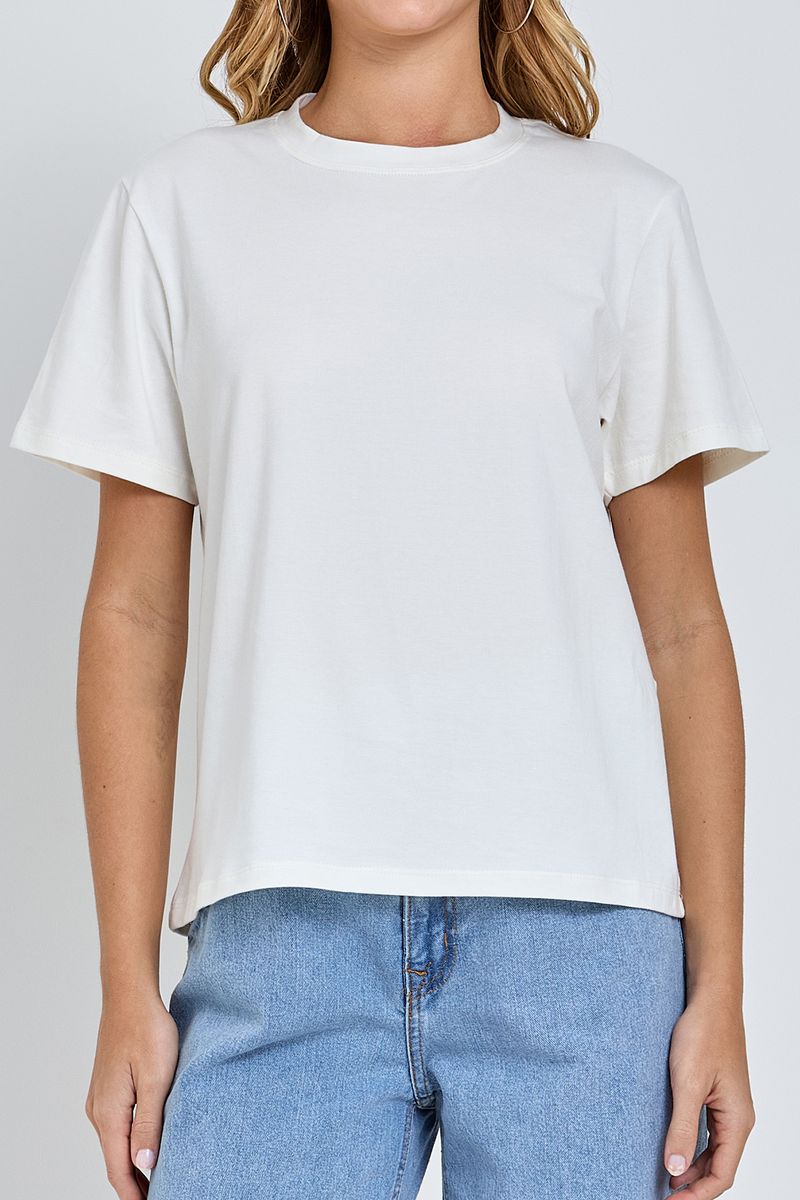 Desfrute do máximo conforto e estilo com a Camiseta Feminina Confort Premium Off White Caedu. Confeccionada em 100% algodão de meia malha, possui amarração frontal que valoriza a silhueta. Perfeita para um visual casual e moderno, esta roupa é essencial no seu guarda-roupa.