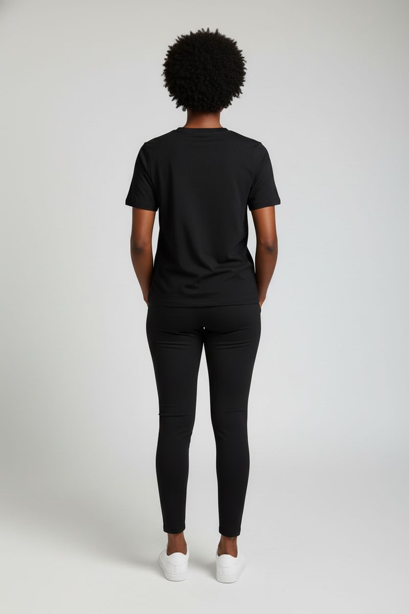 Experimente o máximo conforto com a Camiseta Feminina Conforto Essencial Toque Macio Preta Caedu. Feita em 100% algodão de meia malha, proporciona um toque suave e caimento ideal. Uma peça versátil para compor seus looks de moda com estilo e bem-estar.
