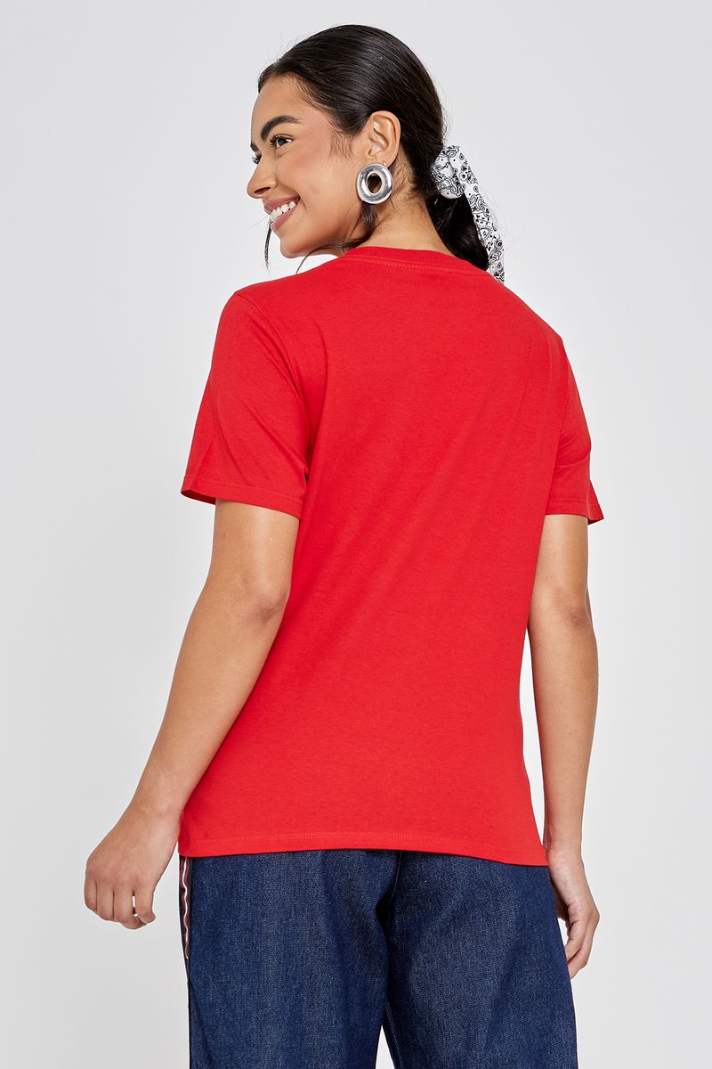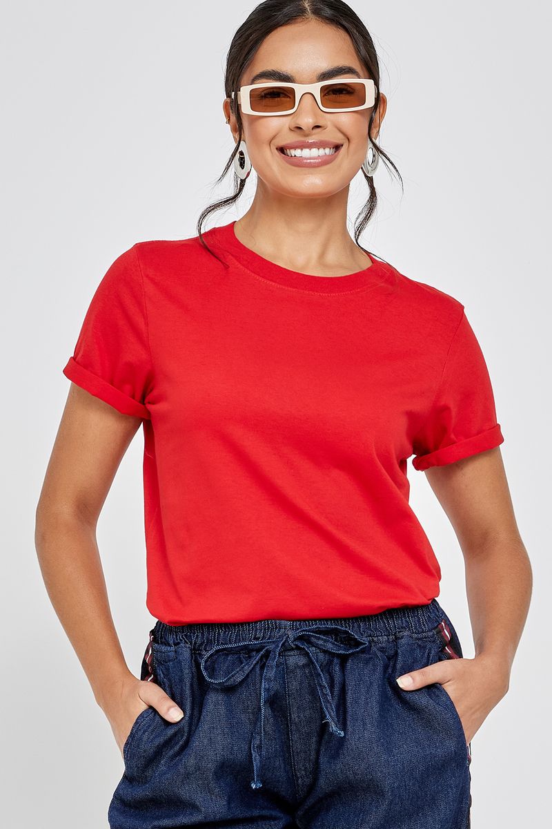 Combine sua Camiseta Vermelho Médio Caedu com jeans wide leg para um visual moderno e despojado. Para um toque casual, aposte em shorts ou saias. Complete o look com tênis brancos ou sandálias confortáveis e adicione acessórios como óculos de sol para um charme extra.
