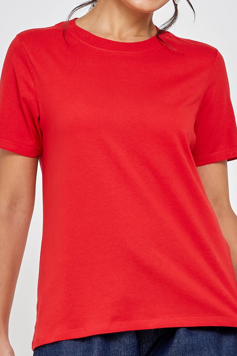 Desfrute do conforto e estilo com a Camiseta Feminina Alongada Vermelho Médio Caedu. Feita em 100% algodão de meia malha, garante toque suave e caimento impecável. Perfeita para looks modernos e versáteis, esta roupa da Caedu é a escolha ideal para sua moda.