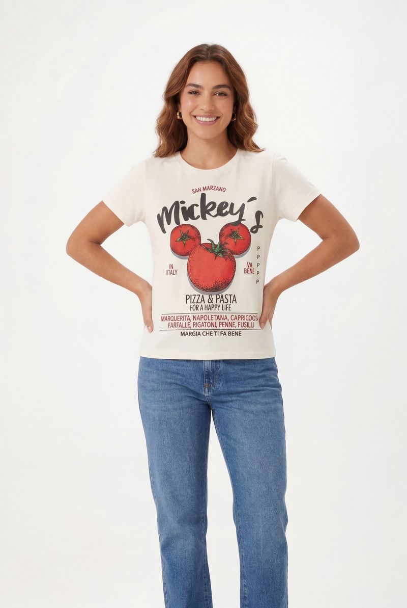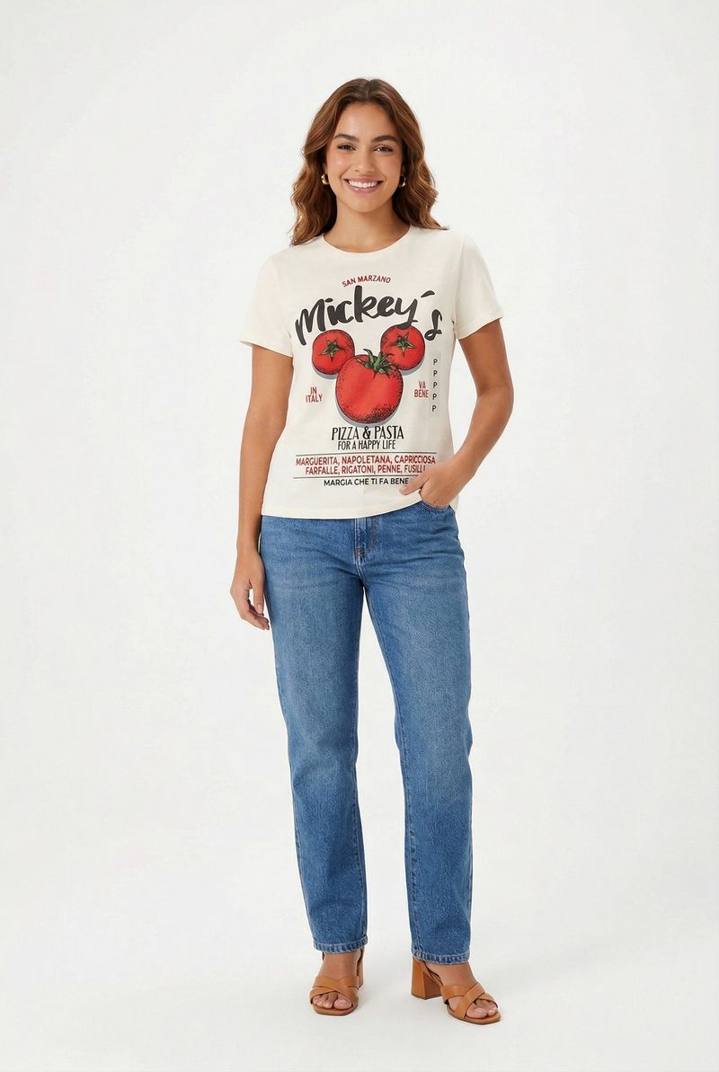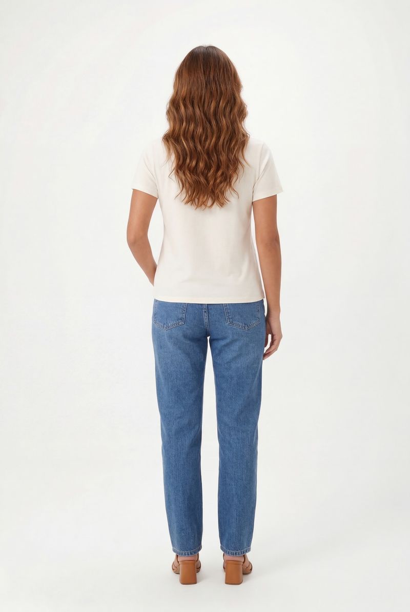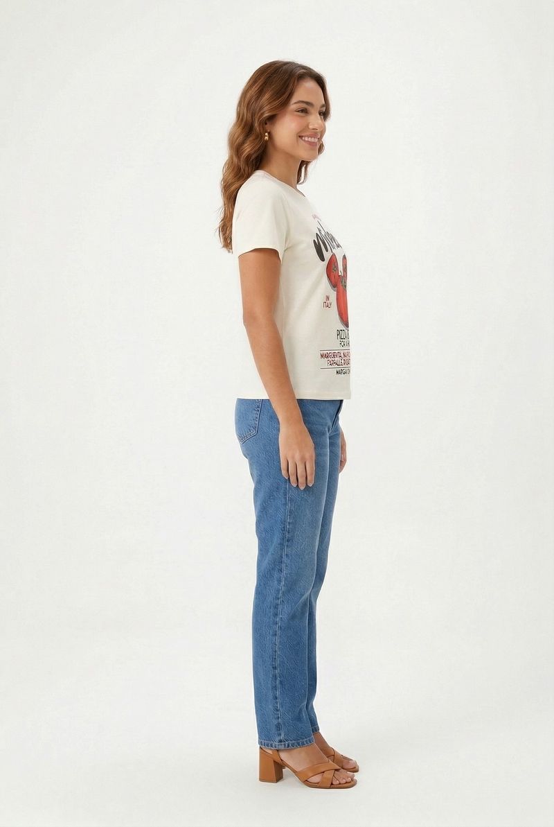 Combine sua camiseta off white com calças jeans de lavagem média para um visual casual e despojado. Para um toque mais elegante, use com saias midi e sandálias de salto bloco. Complete com tênis para um estilo urbano ou adicione uma jaqueta leve para noites mais frescas, criando um look versátil e moderno.