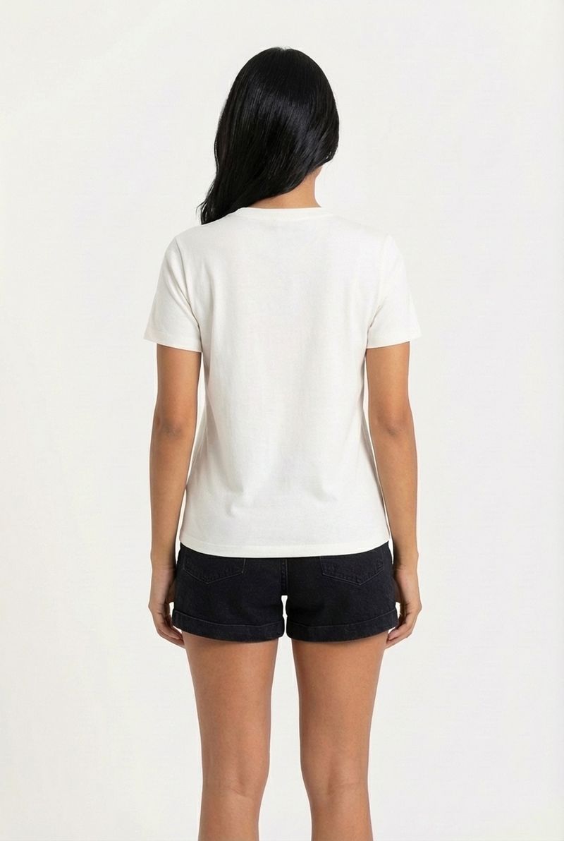 Combine esta camiseta versátil com jeans para um visual despojado, shorts para um toque casual ou saias para um estilo mais feminino. Complete o look com tênis para conforto ou sandálias para um toque elegante. Uma jaqueta leve pode ser adicionada para um charme extra.