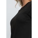 Camiseta feminina confeccionada em tecido polybrush. Com caimento reto e solto, a peça possui gola redonda e manga curta.