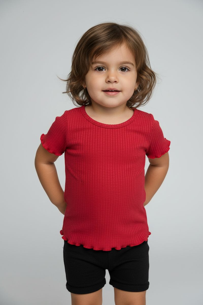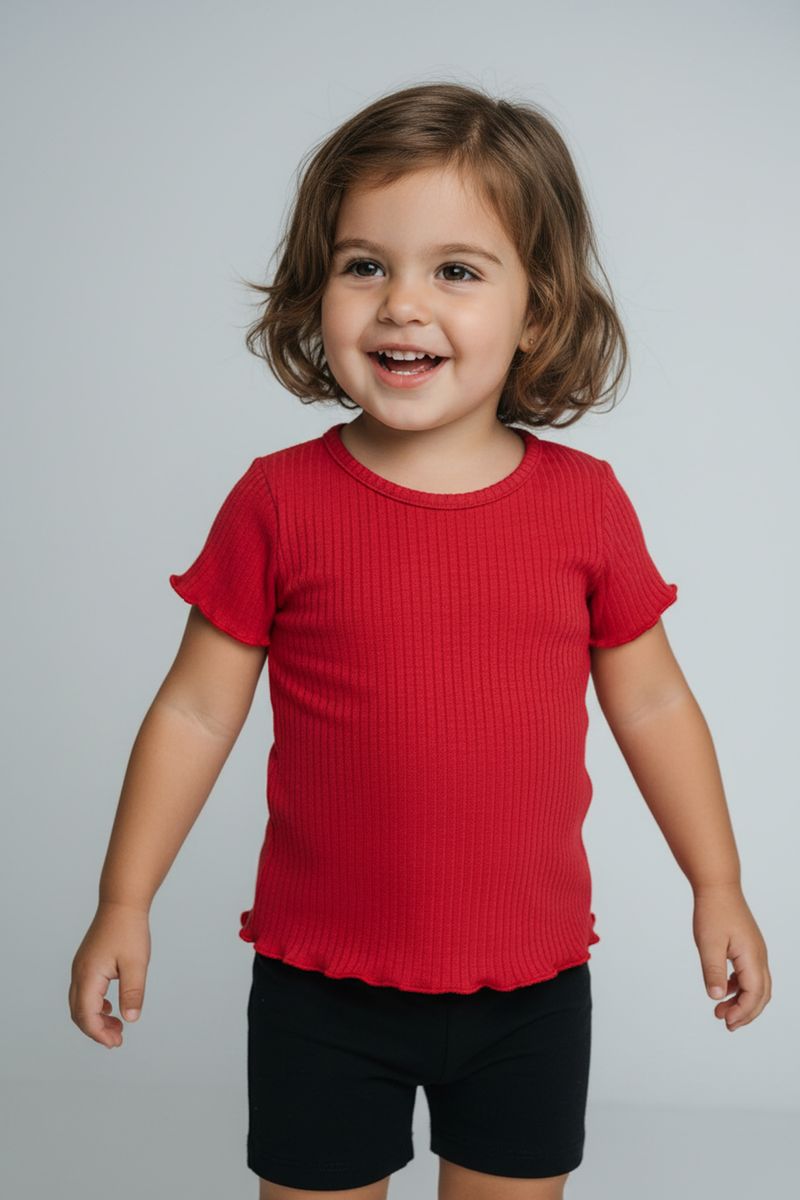 A Blusa Infantil Ribana Vermelha com Babados Caedu é a escolha perfeita para um look cheio de charme e conforto. Confeccionada em 100% algodão, oferece toque suave e liberdade para brincar. Seu design vibrante, com padrão canelado e delicados babados, garante um visual adorável e moderno para as pequenas fashionistas que amam moda Caedu.