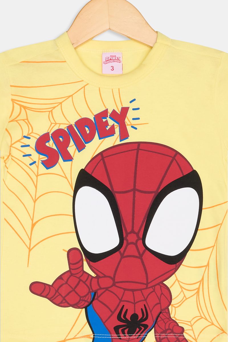 Inspire seu pequeno herói com a Camiseta Infantil Amarela Spidey Homem-Aranha Caedu. Confeccionada em meia malha, oferece conforto e liberdade para brincar. Com cor amarelo claro e estampa vibrante do Homem-Aranha, esta roupa infantil é perfeita para aventuras diárias.