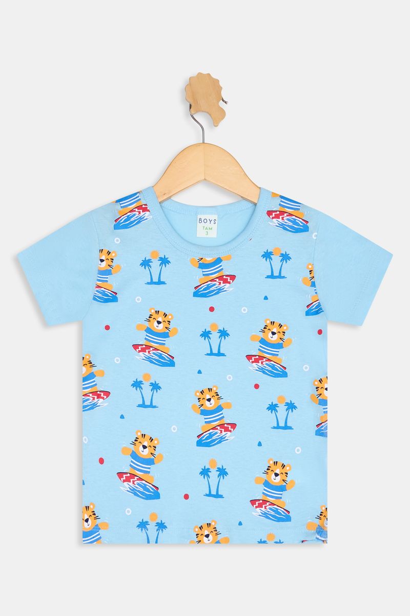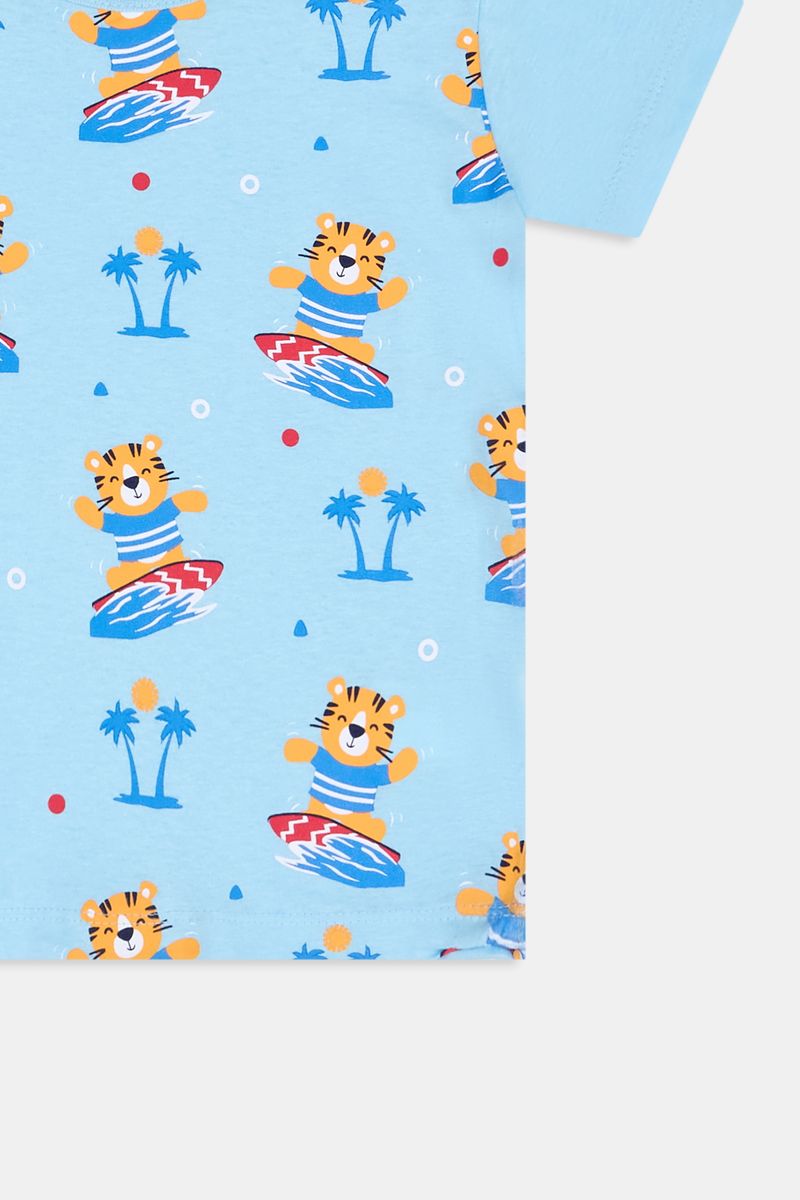 A Camiseta Infantil Caedu em azul claro é perfeita para os pequenos aventureiros. Confeccionada em 100% algodão de meia malha, oferece conforto e leveza. Com estampa vibrante de tigres surfistas e palmeiras, é a roupa infantil ideal para um look divertido e cheio de estilo. Uma peça essencial da moda Caedu para o dia a dia.
