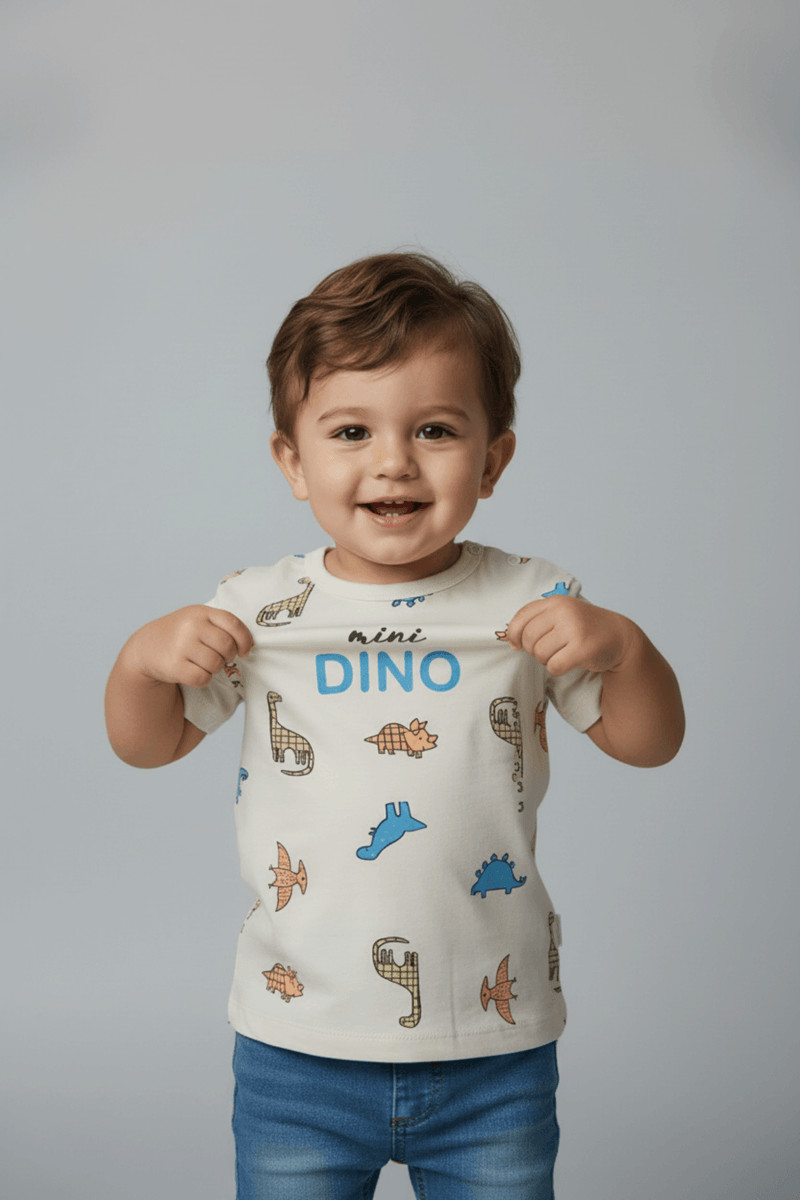 A Camiseta Infantil Dino Off White Caedu é perfeita para o dia a dia. Confeccionada em meia malha, oferece conforto e liberdade. Com estampa divertida de dinossauro e cor off white, esta roupa versátil da Caedu garante moda infantil com muito estilo.