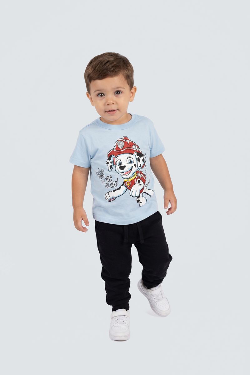 Camiseta Infantil Patrulha Canina Marshall Bombeiro Azul Claro da