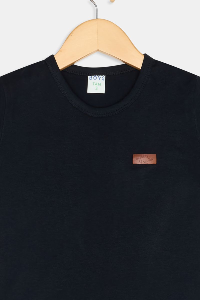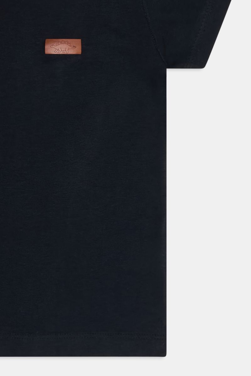 Combine esta camiseta preta com bermudas coloridas ou jeans para um visual despojado. Para um toque mais arrumado, adicione uma jaqueta leve e tênis estilosos. É a base perfeita para criar looks versáteis e cheios de personalidade para os meninos.