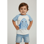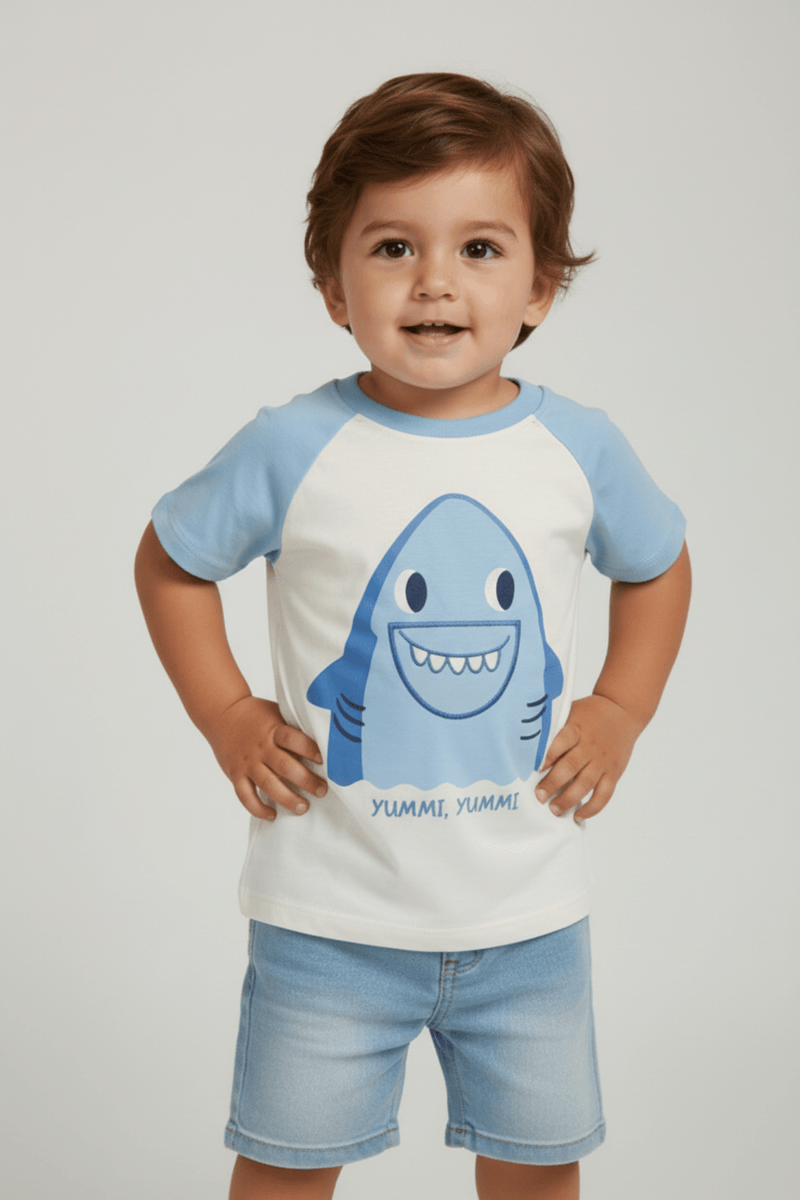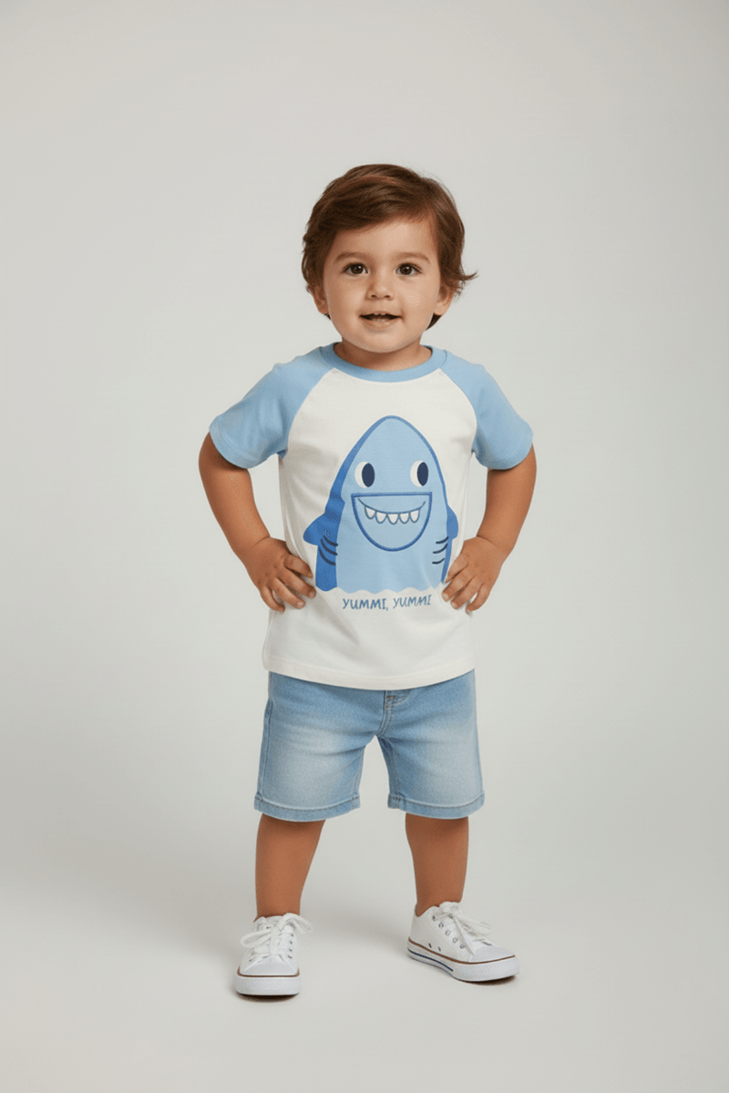 Vista seu pequeno com estilo Caedu! A Camiseta Infantil Raglan Tubarão da Marca Infantil, em meia malha macia, oferece conforto e liberdade para brincar. É a roupa infantil perfeita para o dia a dia, garantindo bem-estar e um visual despojado.