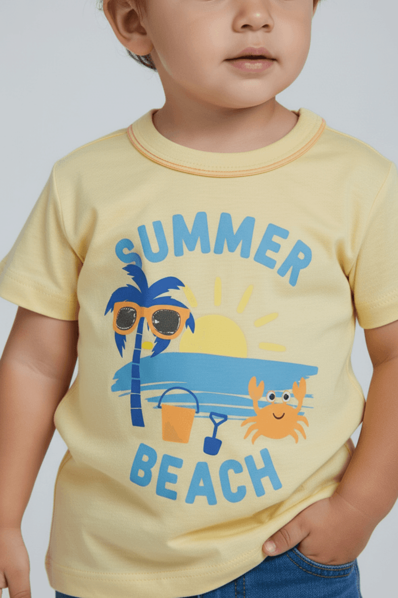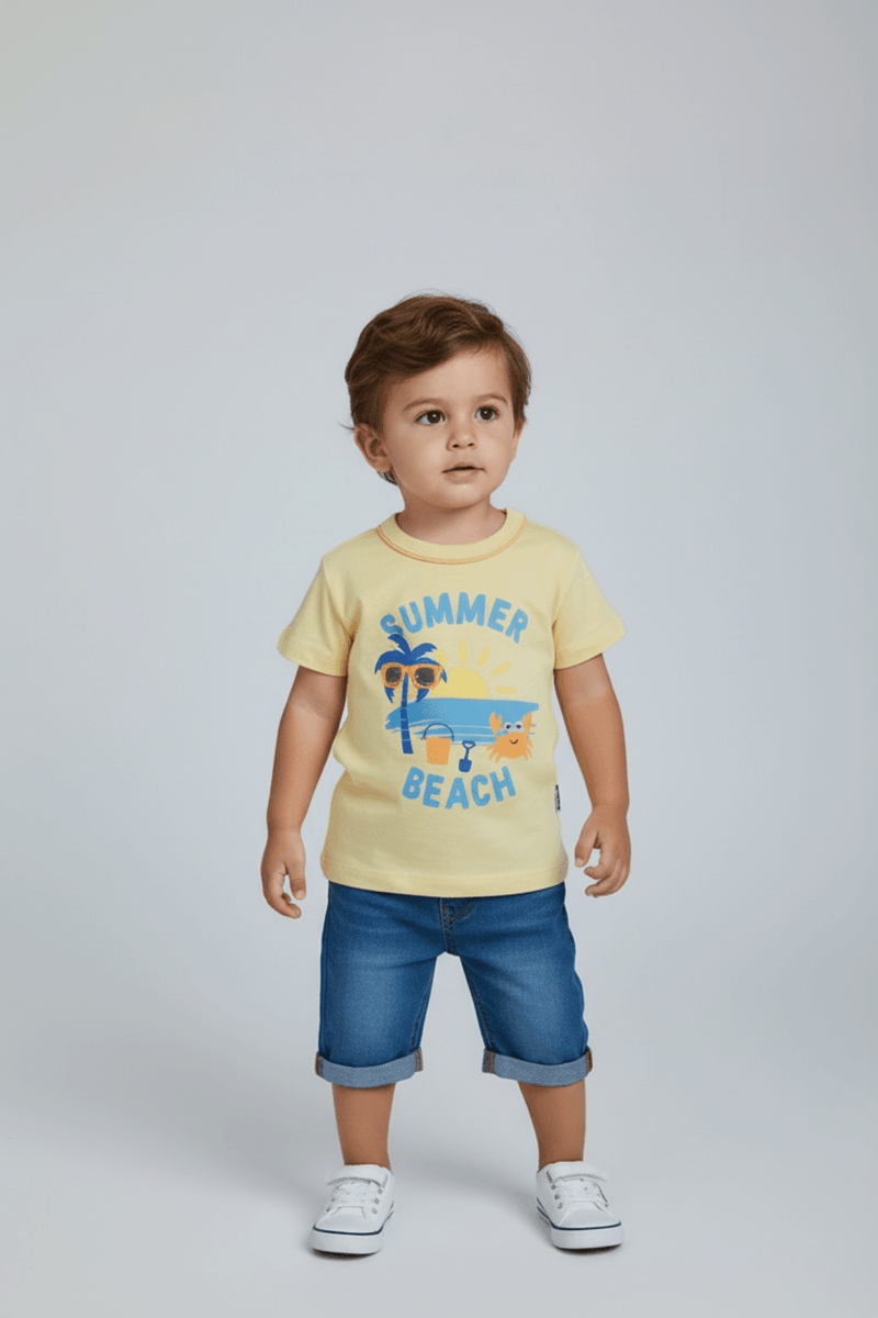 A Camiseta Infantil Amarela Flamê Summer Beach, da marca Infantil, é a roupa infantil ideal para os pequenos. Confeccionada em flamê, oferece conforto, leveza e liberdade para brincar com muito estilo. Uma peça vibrante para a moda infantil e todas as aventuras.