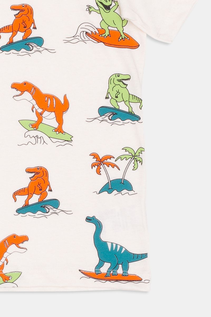 Camiseta Infantil Dinossauros Off White Tam 4 a 8