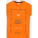 Camiseta infantil laranja com estampa, perfeita para compor looks vibrantes e alegres.