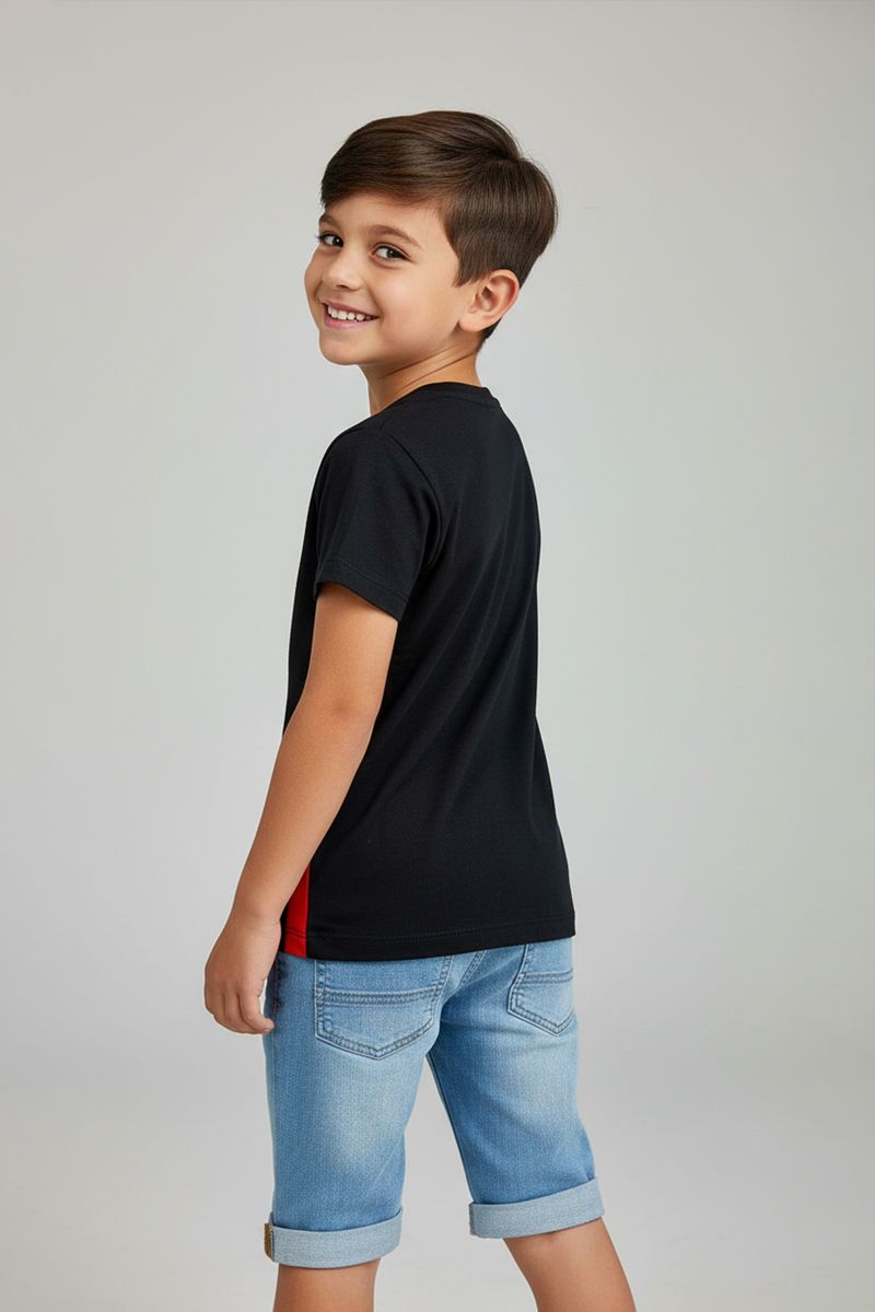 Combine esta camiseta infantil com um shorts jeans claro e tênis pretos para um look casual e despojado, perfeito para brincar. Para um visual mais arrumado, use com uma calça de sarja escura e um tênis casual. Adicione um boné para um toque extra de estilo e proteção. As roupas Caedu oferecem versatilidade para o guarda-roupa infantil.
