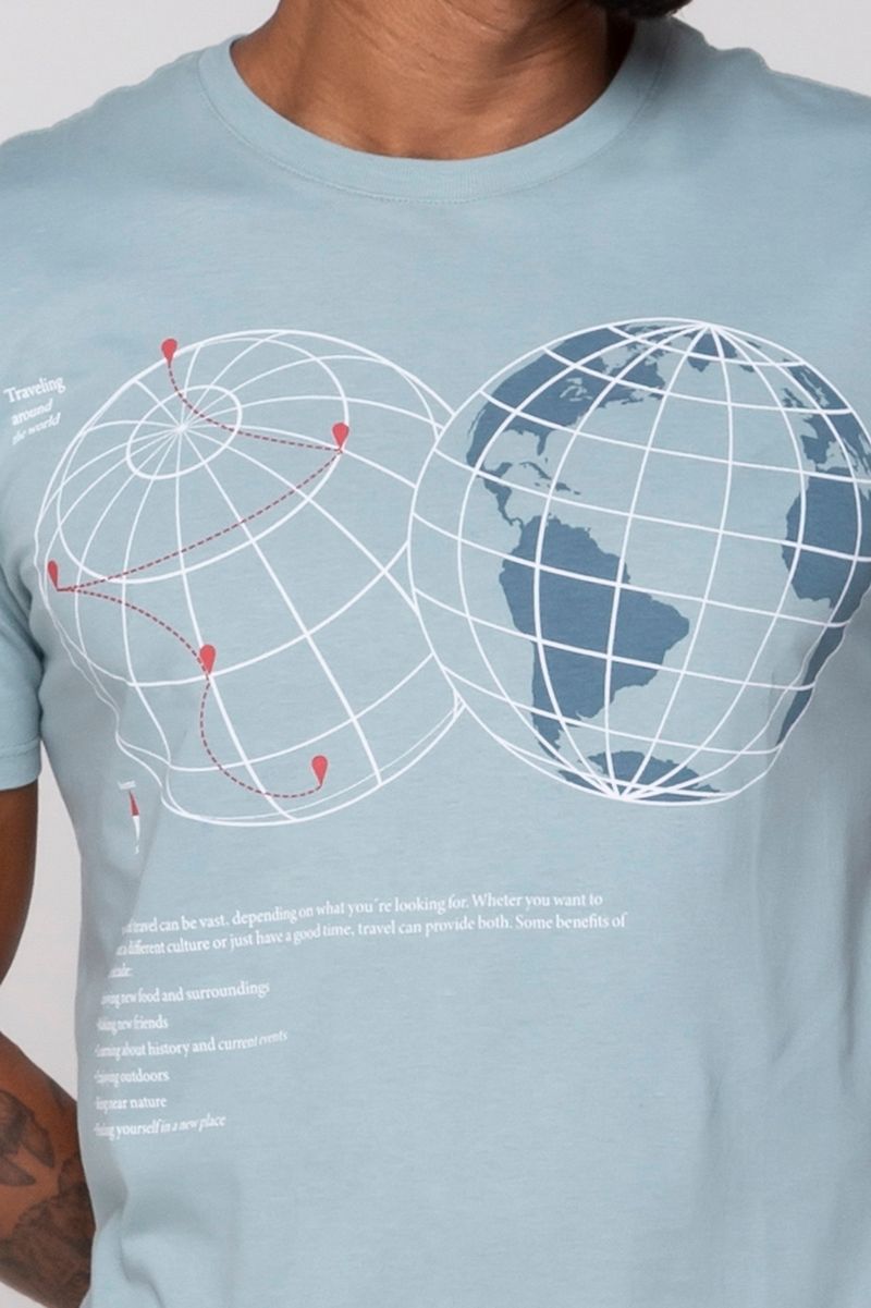 VestuárioOfertasMasculinoNovidadesMasculinoCamisetasCamiseta Masculina com Estampa Globo Turquesa