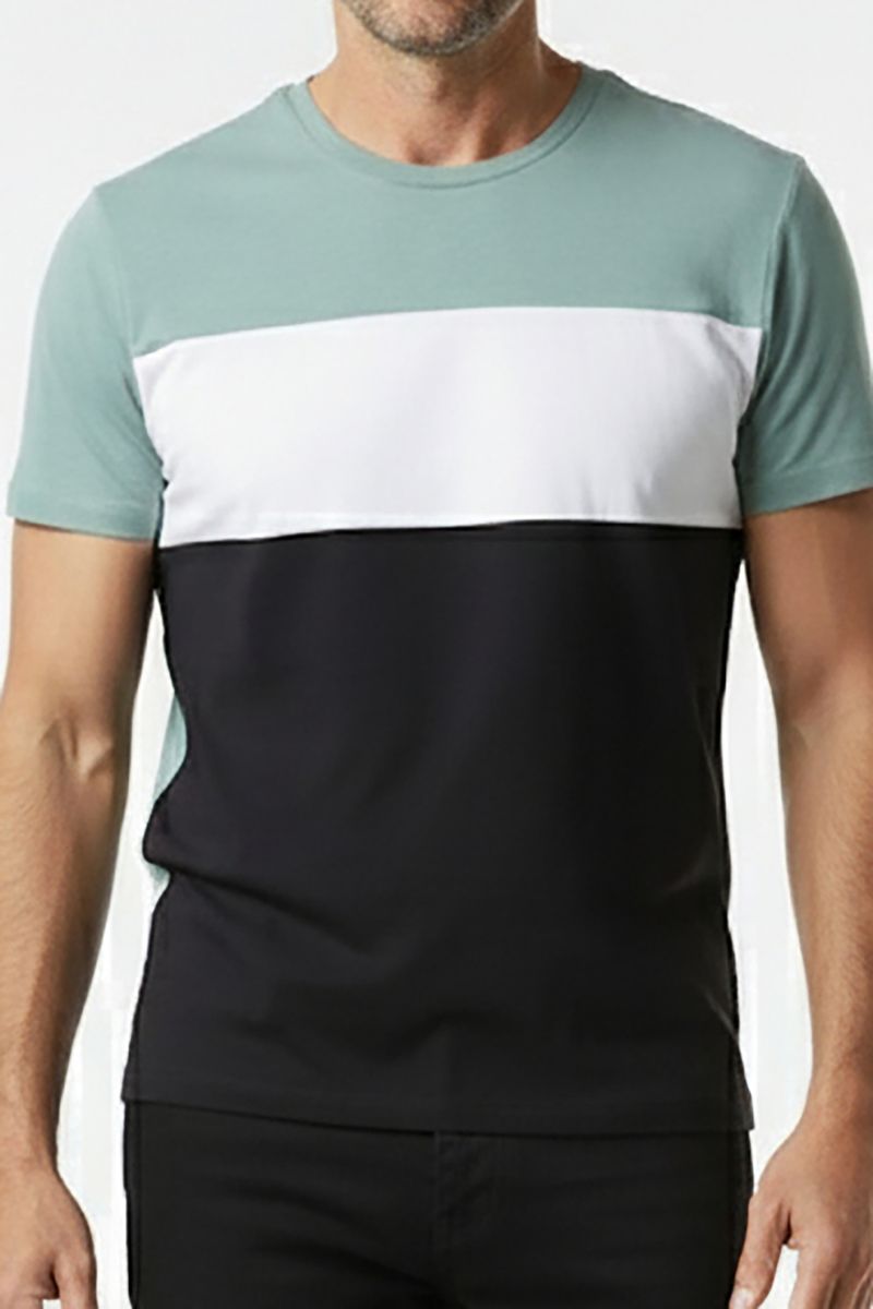 Descubra a Camiseta Masculina Color Block Caedu, a roupa perfeita para o seu dia a dia. Feita em 100% algodão, oferece estilo e conforto incomparáveis. Seu design moderno em verde menta, branco e preto é a moda que você busca com bom preço.