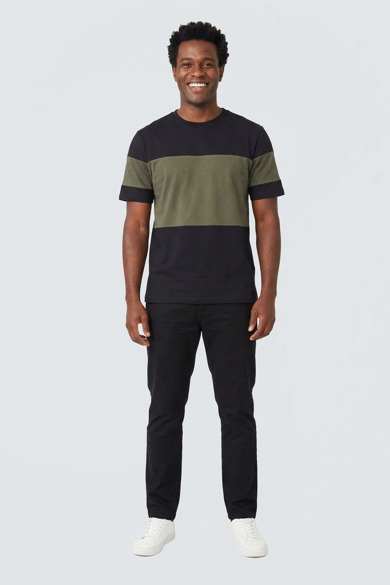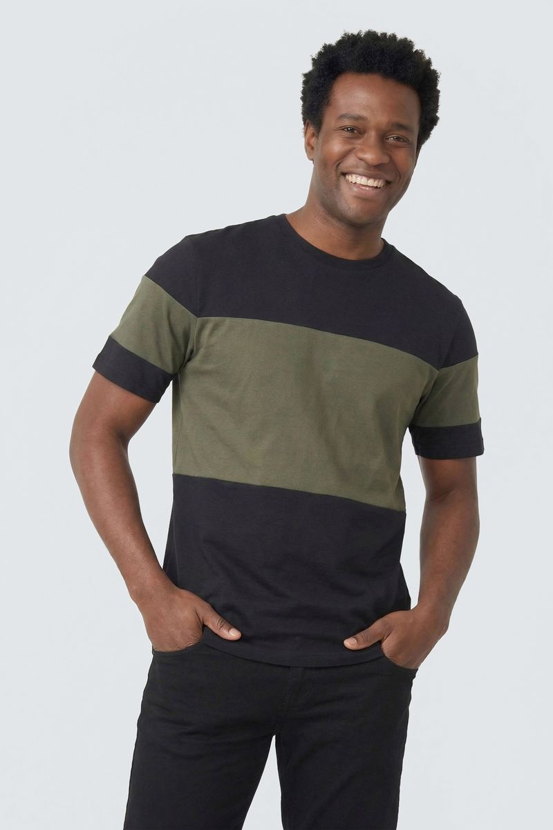 VestuárioMasculinoCamisetasCamiseta masc cas recort malhao pre/verd preto