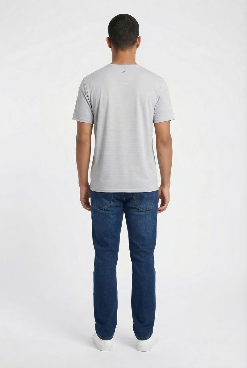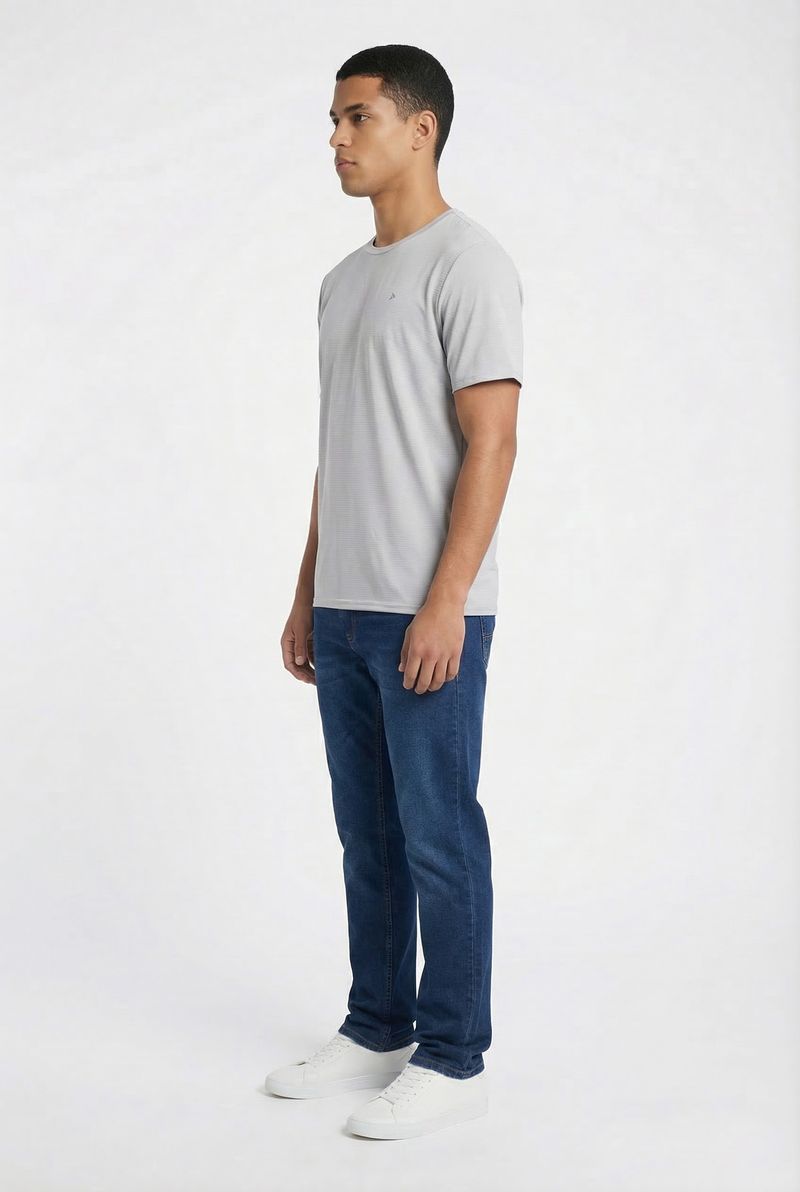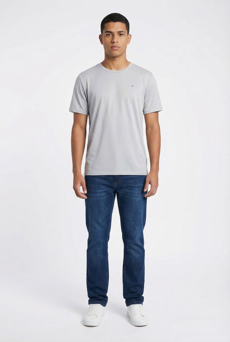 Eleve seu estilo com a Camiseta Masculina Caedu Cinza Prata. Confeccionada em 100% poliéster, oferece conforto e durabilidade. Seu tom cinza claro e a textura sutil de listras finas proporcionam um visual moderno e versátil, perfeito para a moda masculina. Um item essencial da Caedu.