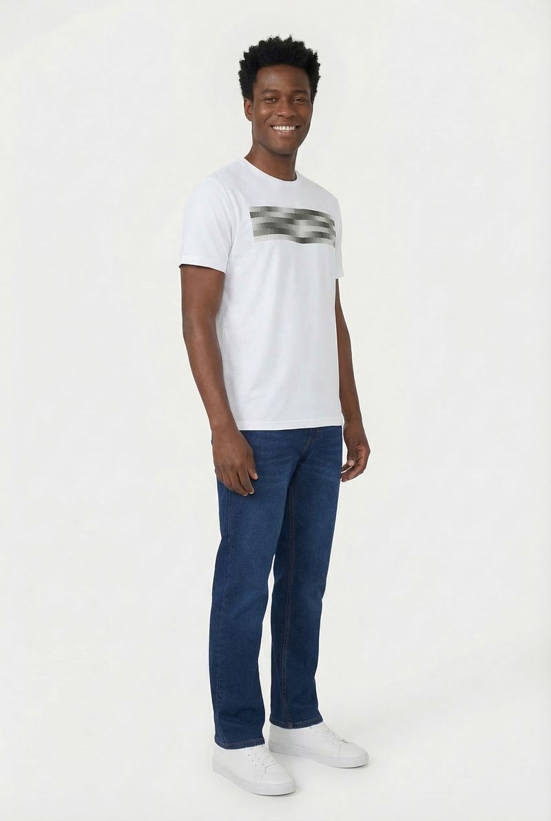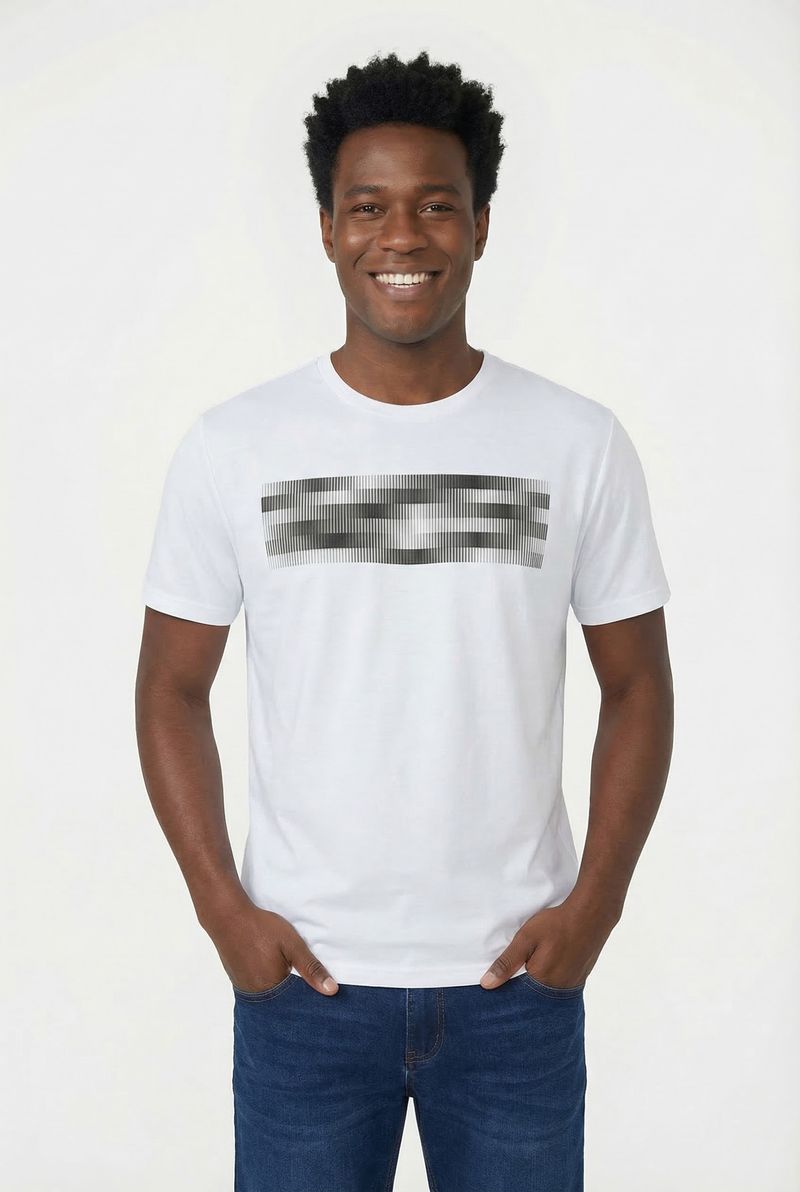 Eleve seu estilo com a Camiseta Masculina Caedu Branca. Confeccionada em DRY 100% poliéster, oferece conforto e leveza. A estampa gráfica de linhas modernas em tons de cinza e preto adiciona um toque contemporâneo, ideal para um visual atual e versátil. Uma roupa essencial.