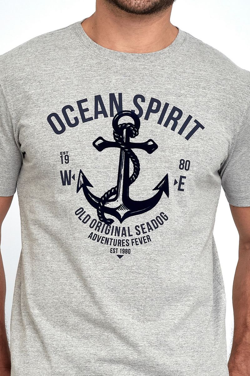 CAMISETA MASC MC CASUAL FLOCADO CINZA - CINZA MEDIO