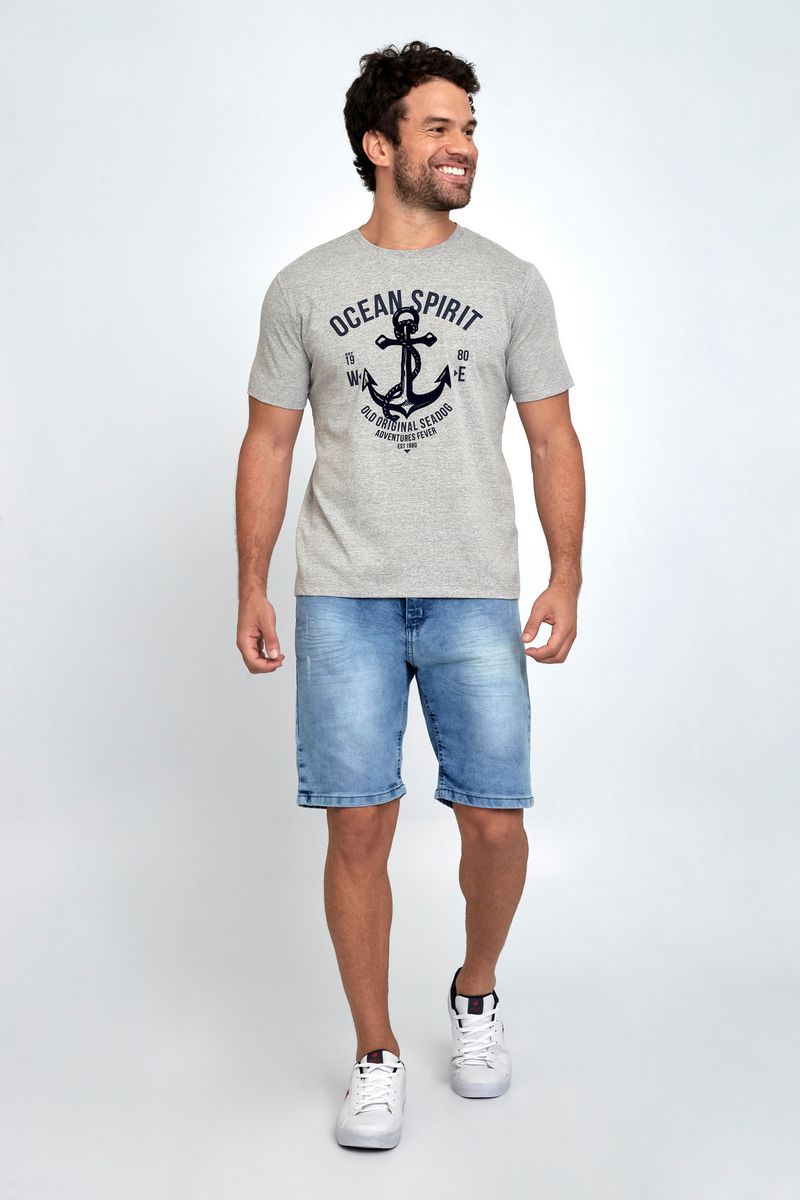 VestuárioMasculinoNovidadesCamisetasCAMISETA MASC MC CASUAL FLOCADO CINZA - CINZA MEDIO