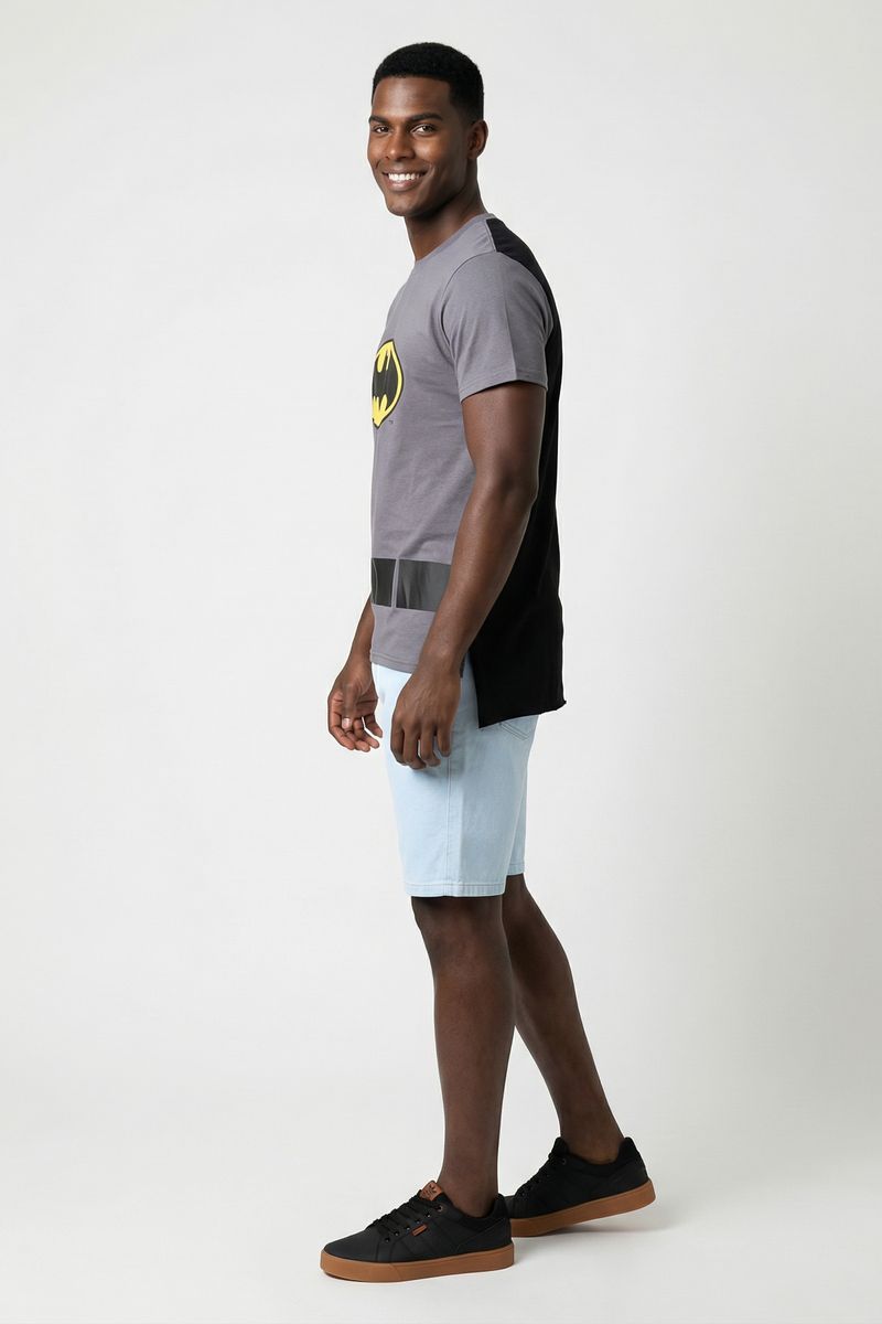 A Camiseta Masculina Batman Caedu, em 100% algodão, oferece conforto e estilo. Com estampa icônica do Batman, cinto e capa simulados, é a roupa perfeita para seu lado heroico.