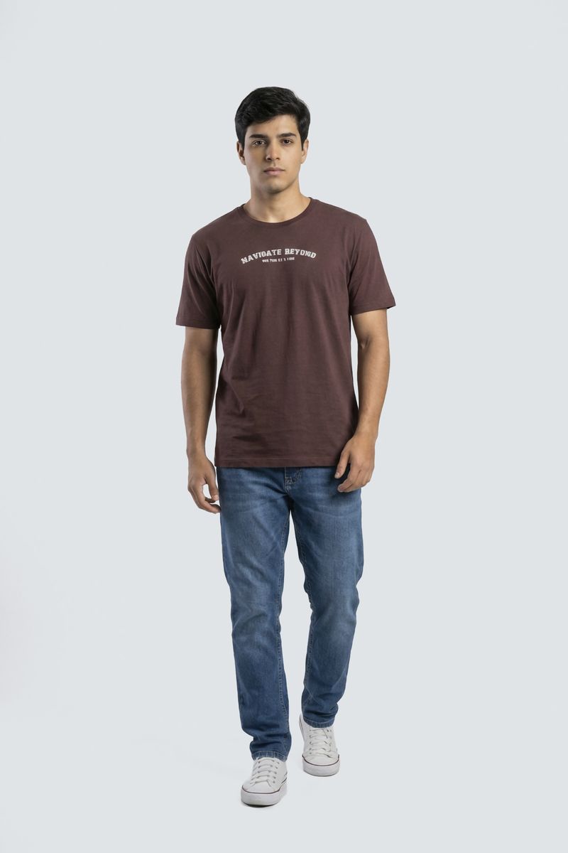 Explore novos horizontes com a Camiseta Masculina Regular Fit 'Navigate Beyond' Bordô Estampada Caedu. Confeccionada em 100% algodão de meia malha, oferece conforto e caimento ideal. A estampa motivacional e a cor bordô vibrante garantem um visual moderno e inspirador.