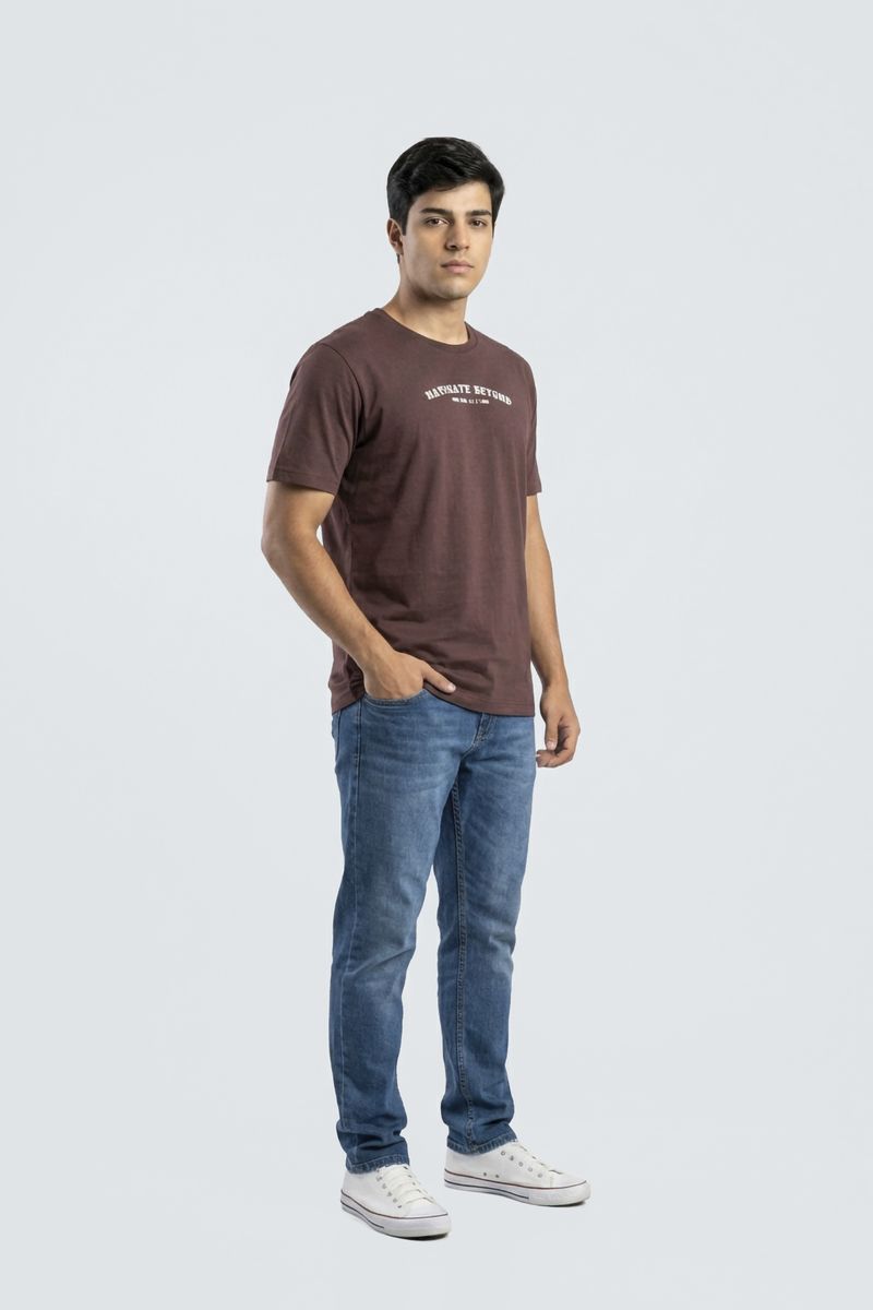 Combine sua camiseta bordô com uma calça jeans de lavagem média e tênis brancos para um look casual e despojado. Para um toque extra de estilo, adicione uma jaqueta leve. Também fica ótima com bermudas para dias mais quentes, criando um visual prático e moderno para sua moda.
