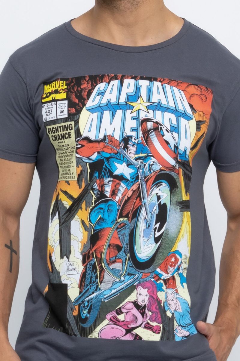 Camiseta Masculina Estampa Capitão América Cinza Escuro