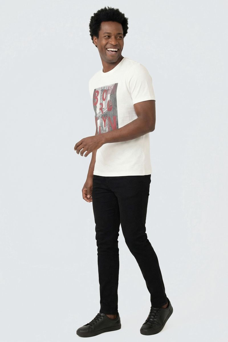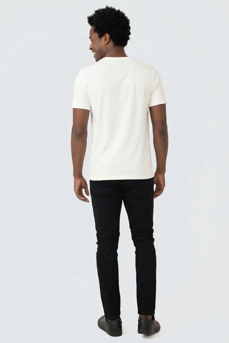 Combine sua camiseta off white com jeans para um look casual clássico, ou com bermudas para um visual mais despojado. Para um toque extra de estilo, adicione uma jaqueta jeans ou de sarja e finalize com tênis brancos ou sapatênis. É a base perfeita para criar looks autênticos e cheios de personalidade.