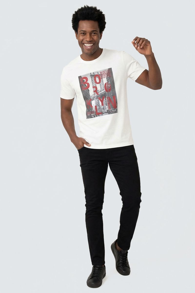 Descubra a moda e o conforto da Camiseta Masculina Off White Caedu. Confeccionada em 100% algodão e meia malha, oferece toque macio e caimento regular. A estampa silk da Brooklyn Bridge adiciona um toque urbano e autêntico, ideal para quem busca roupas versáteis e modernas na Caedu.