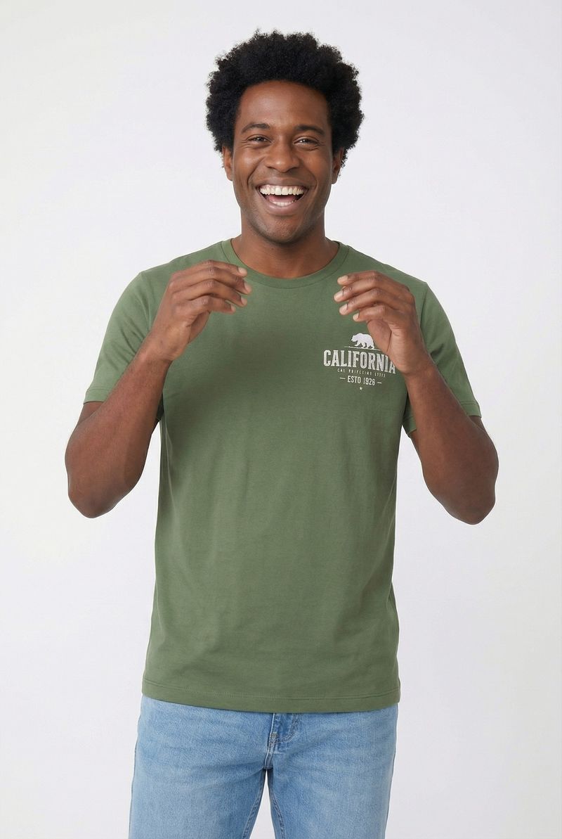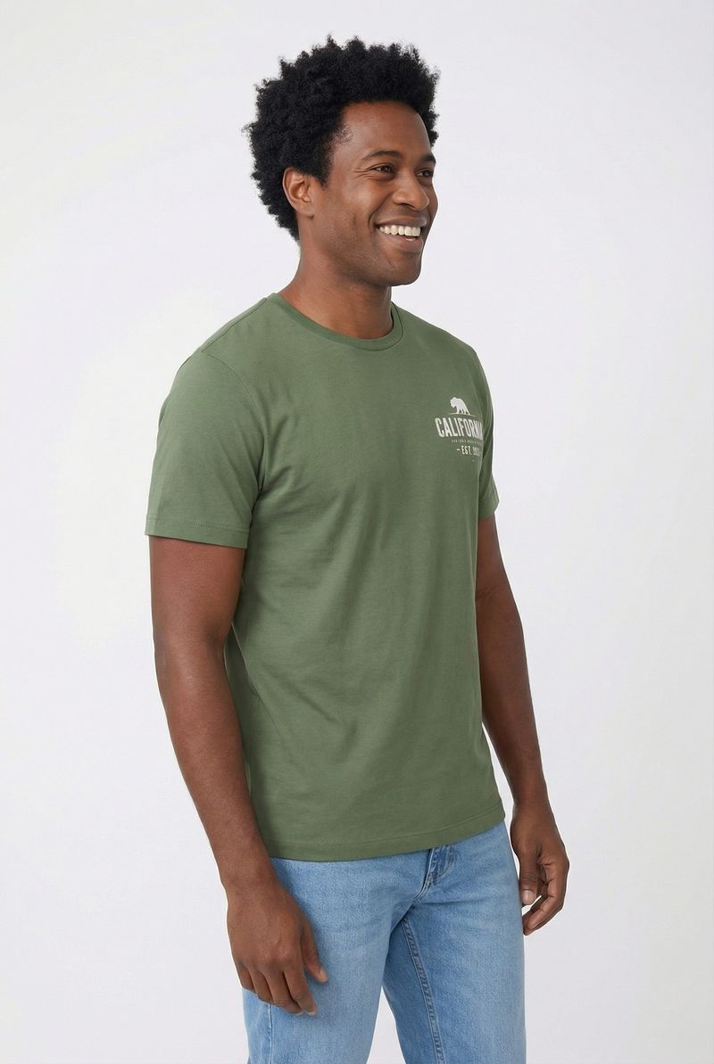 Eleve seu estilo com a Camiseta Masculina Caedu Verde Oliva California Bear. Confeccionada em 100% algodão em meia malha, esta peça oferece conforto superior e um toque moderno. O tom verde, que remete ao pistache, garante um visual de alto nível de moda, enquanto a estampa exclusiva do urso da Califórnia adiciona personalidade. Uma escolha ideal para quem busca roupas que unem qualidade e tendência.
