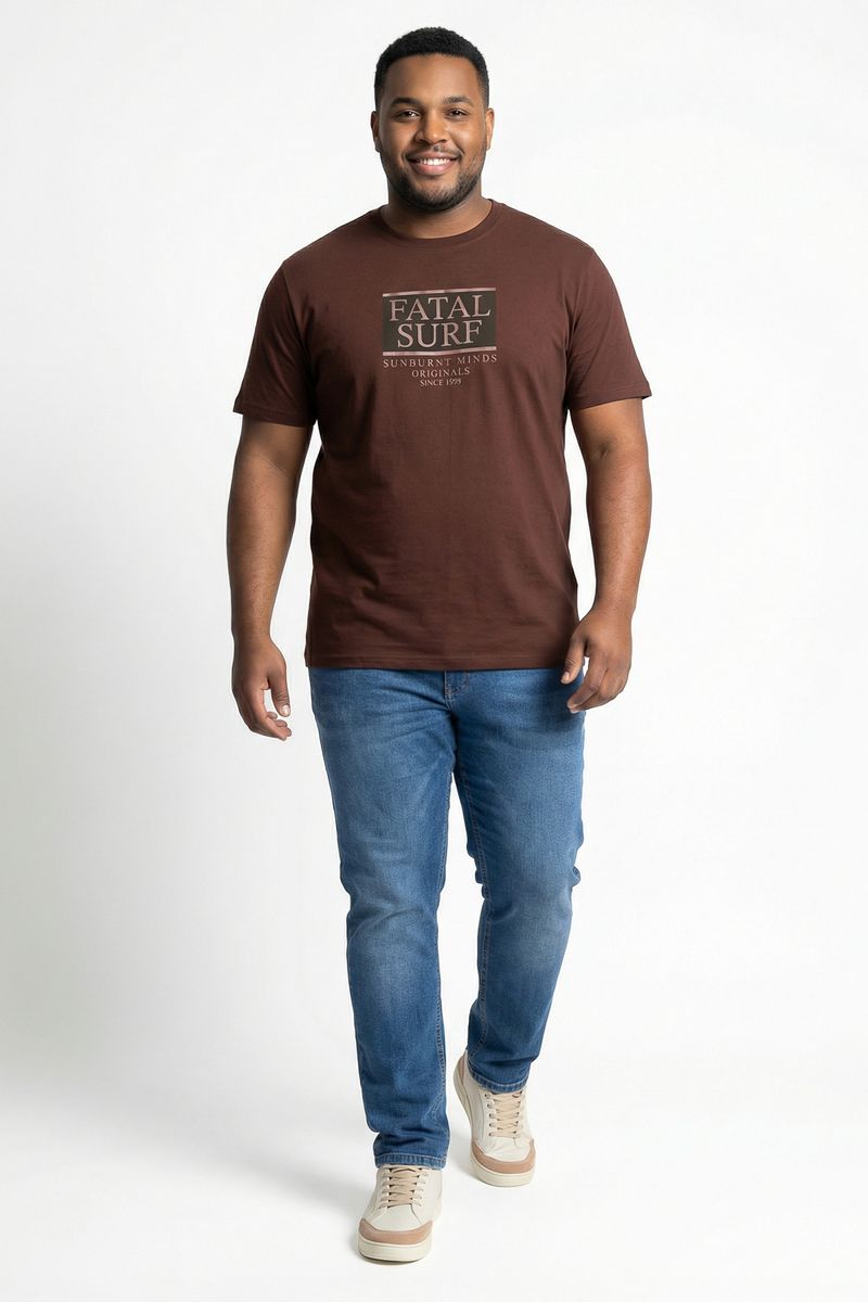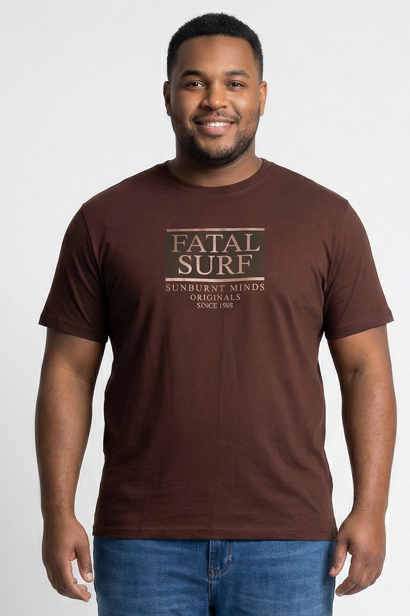 Eleve seu estilo com a Camiseta Masculina Fatal Surf Caedu. Confeccionada em 100% algodão de meia malha, oferece conforto e durabilidade. Seu design streetwear original, na cor marrom médio, com estampa exclusiva Fatal Surf, é ideal para quem busca moda.