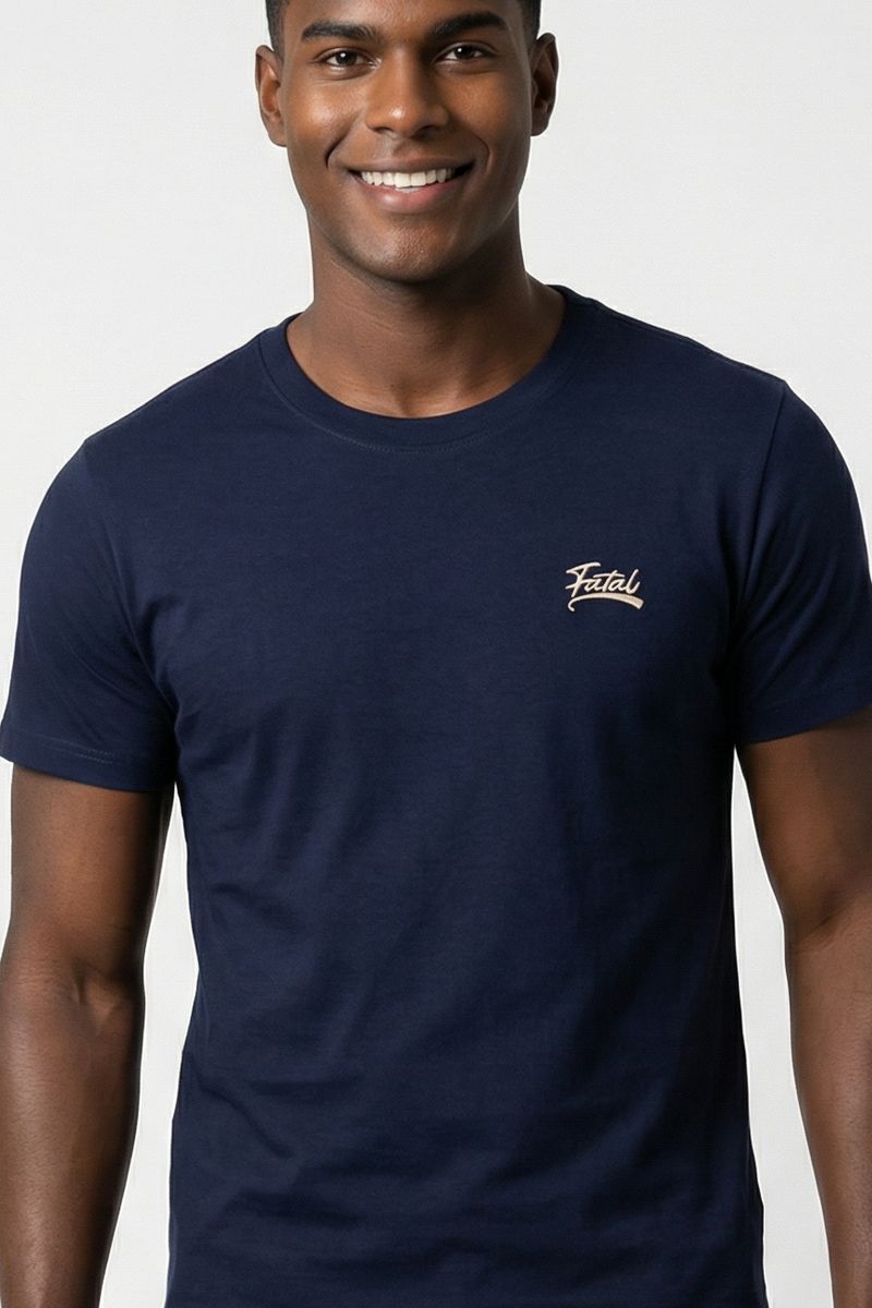 A Camiseta Masculina Fatal Azul Marinho Caedu é essencial para seu estilo urbano. Confeccionada em 100% algodão de meia malha, oferece conforto e durabilidade. Com gola redonda e estampa sutil, é uma peça versátil da moda Caedu para o dia a dia.